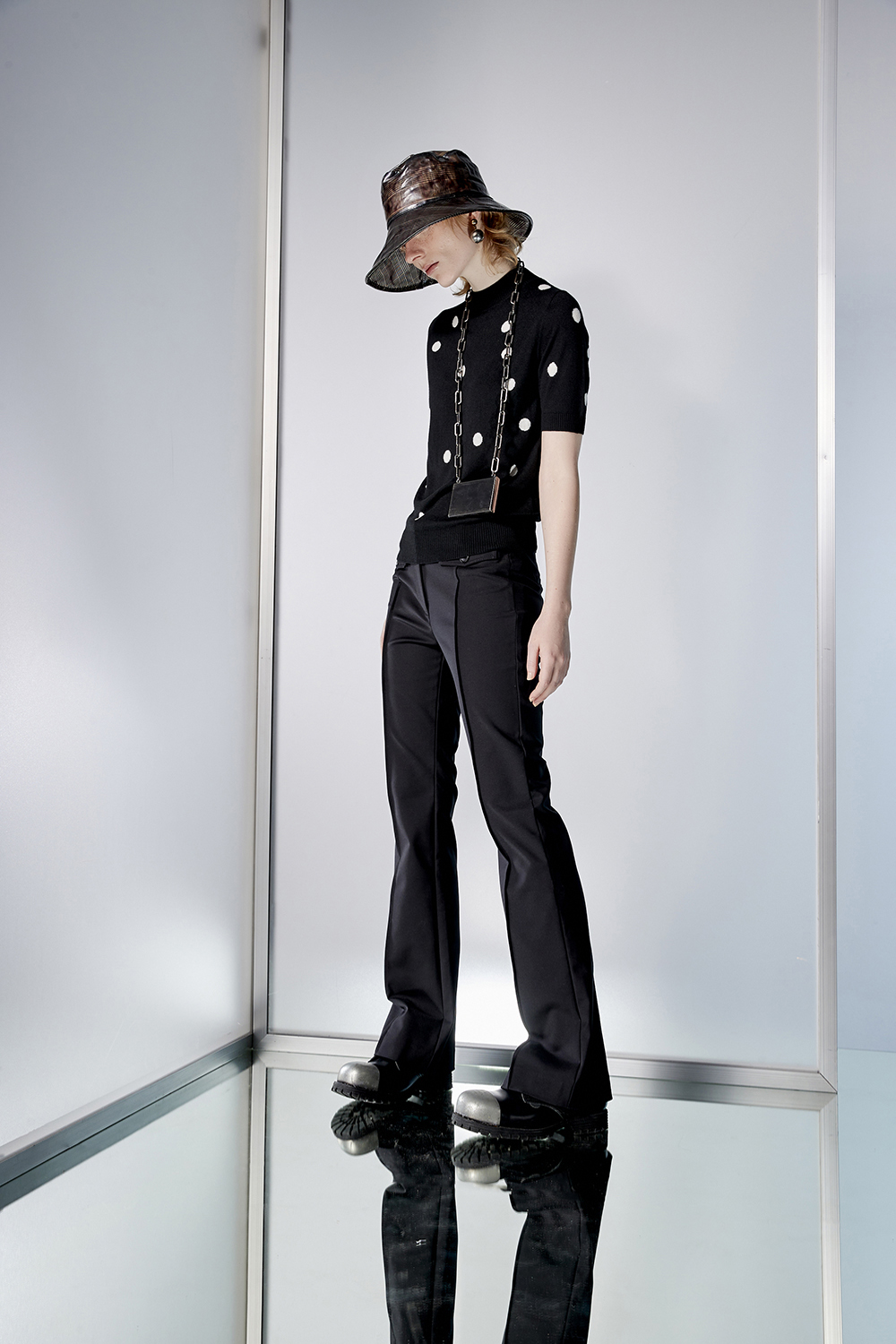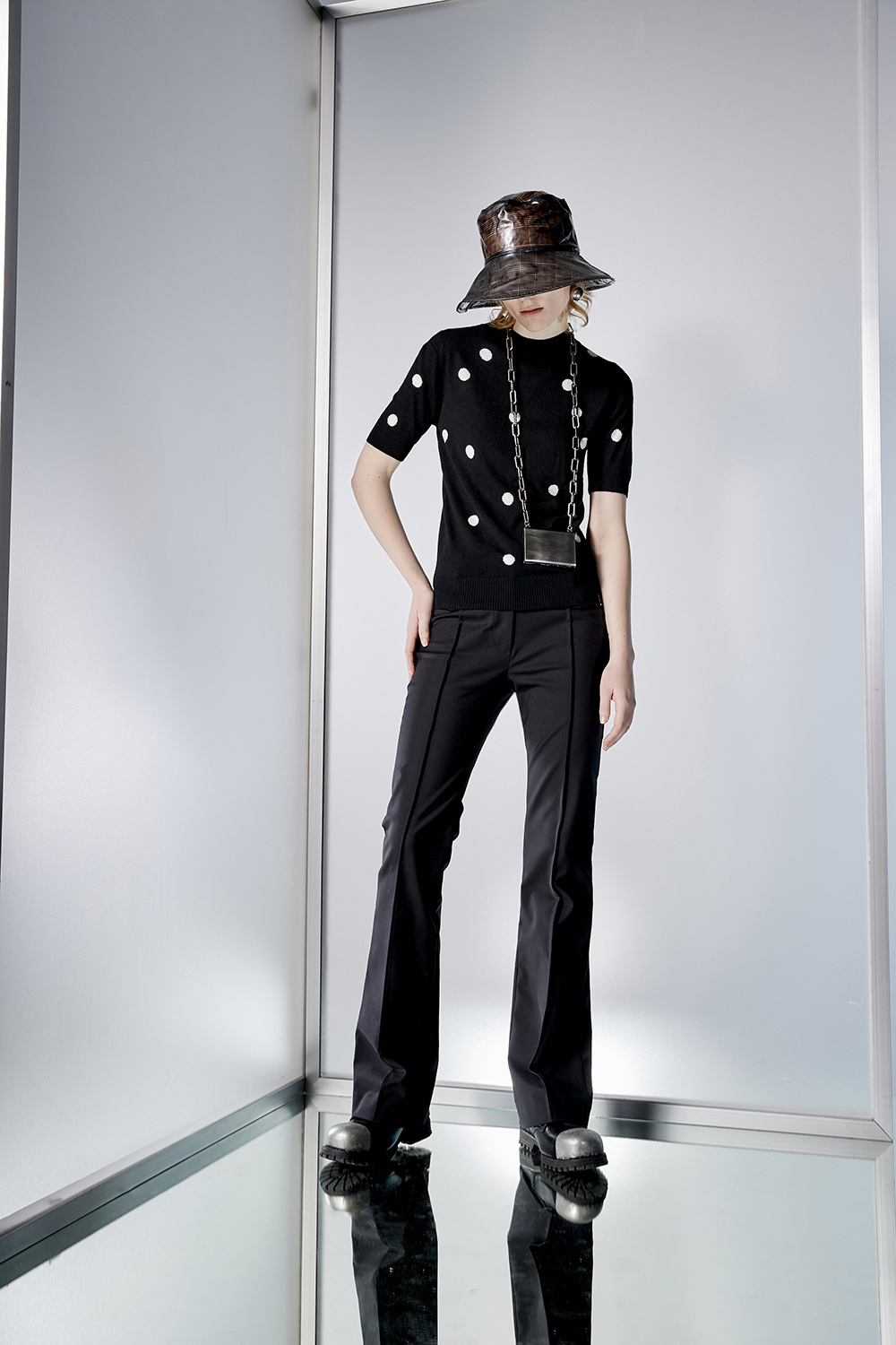 漫秋微隱翻蓋抓褶合身喇叭褲 - 神祕純黑, 36