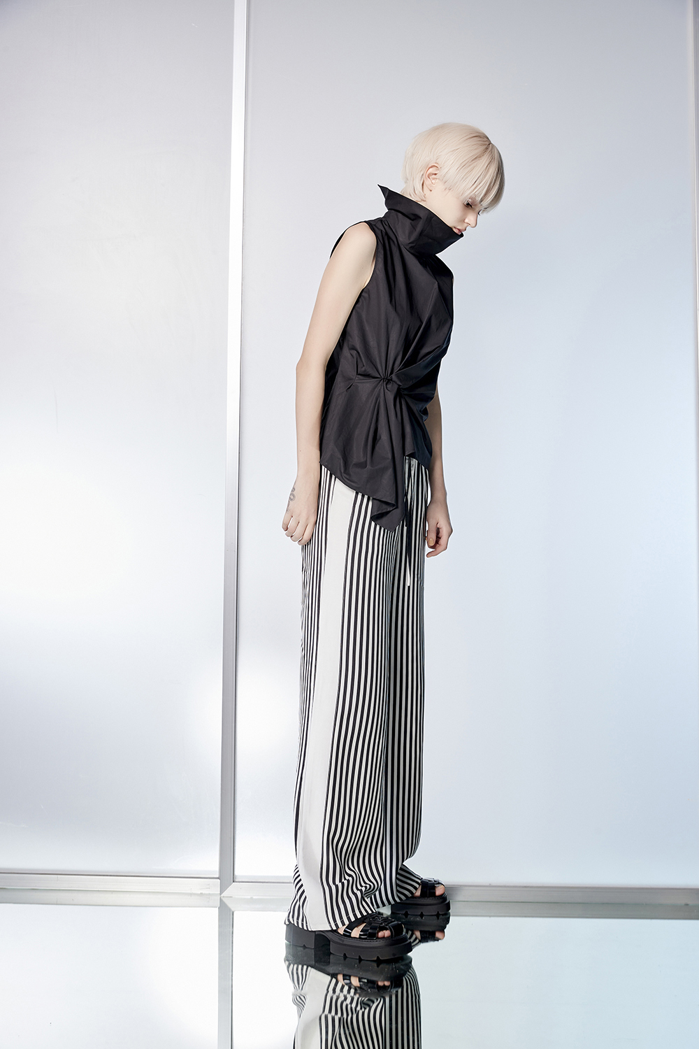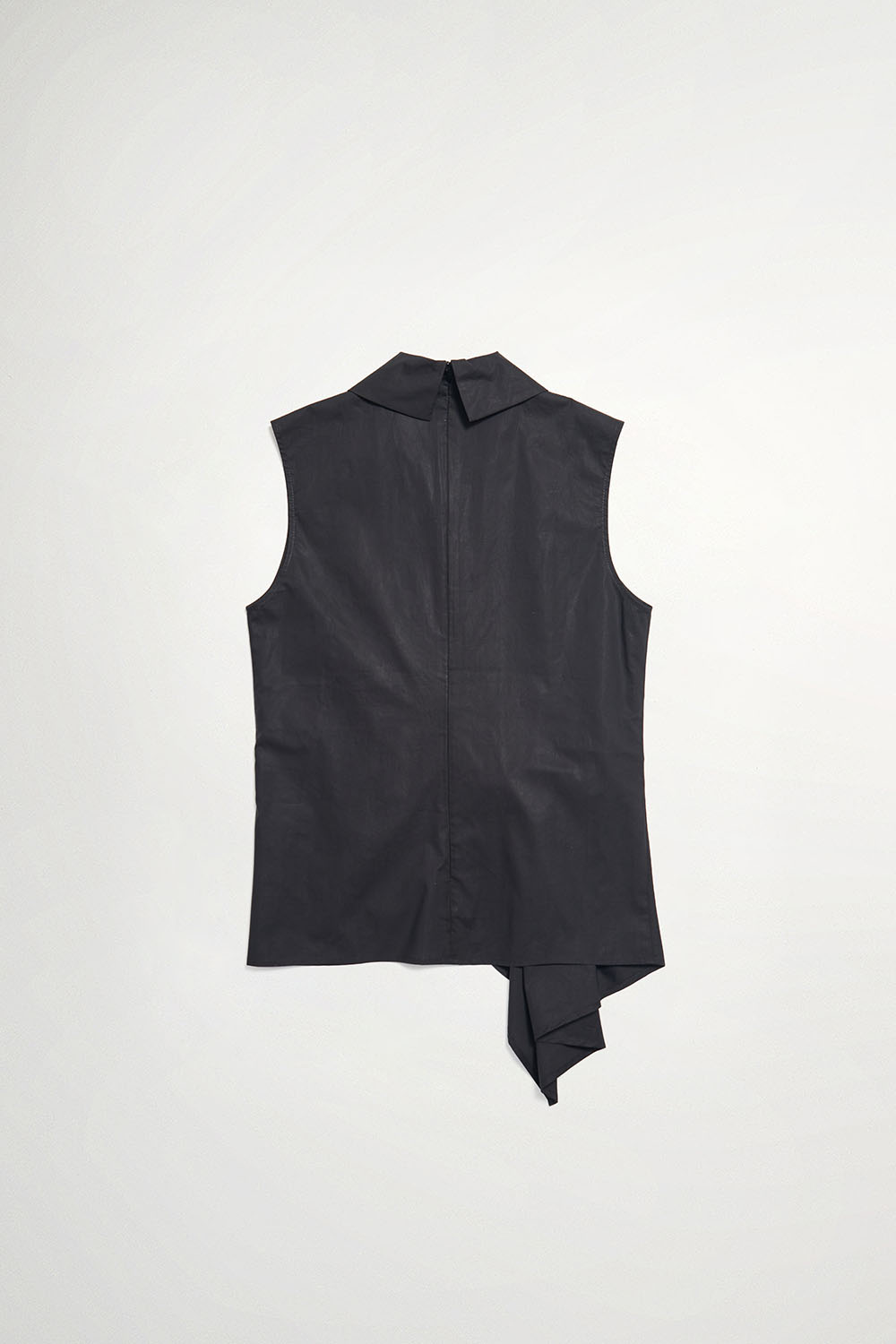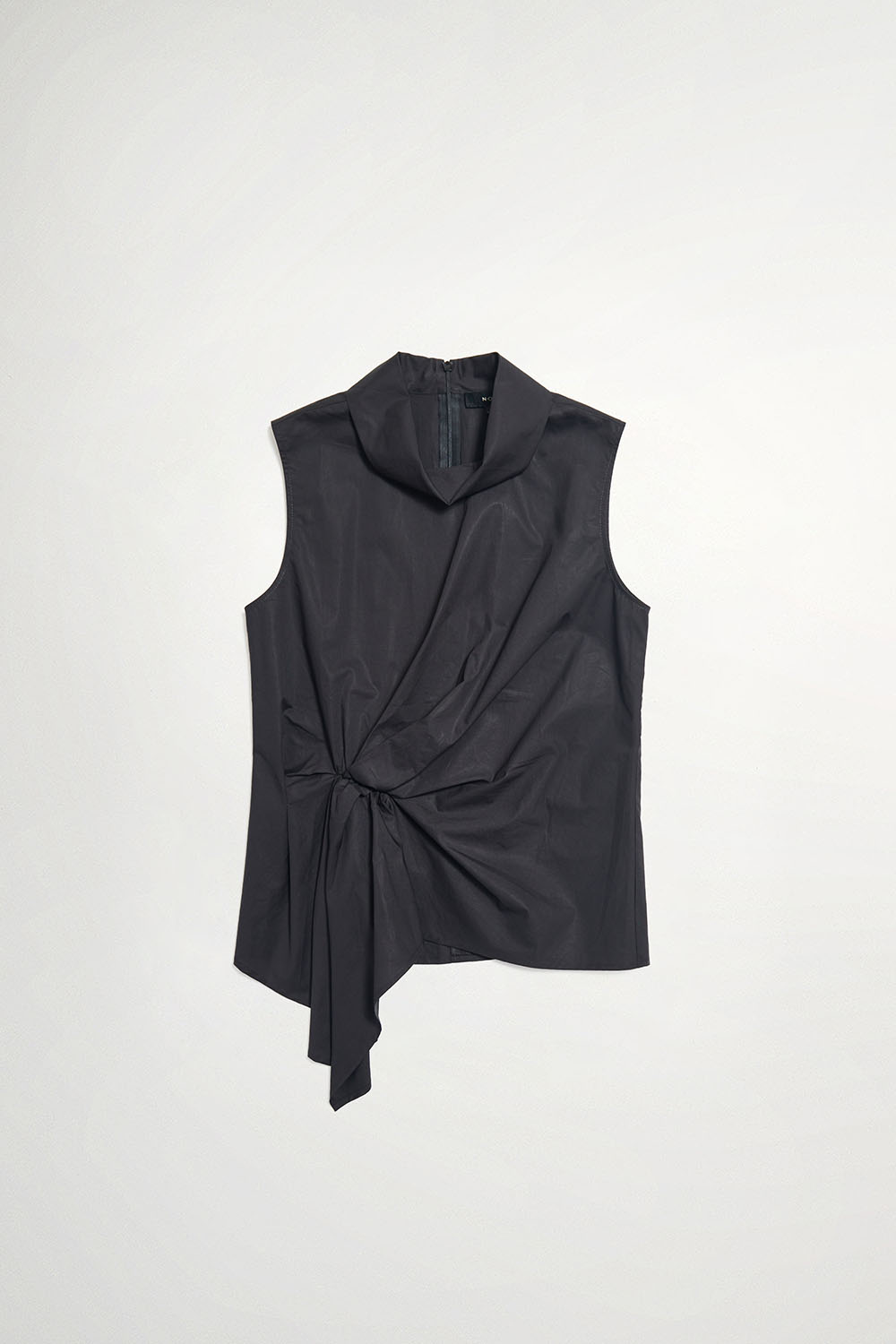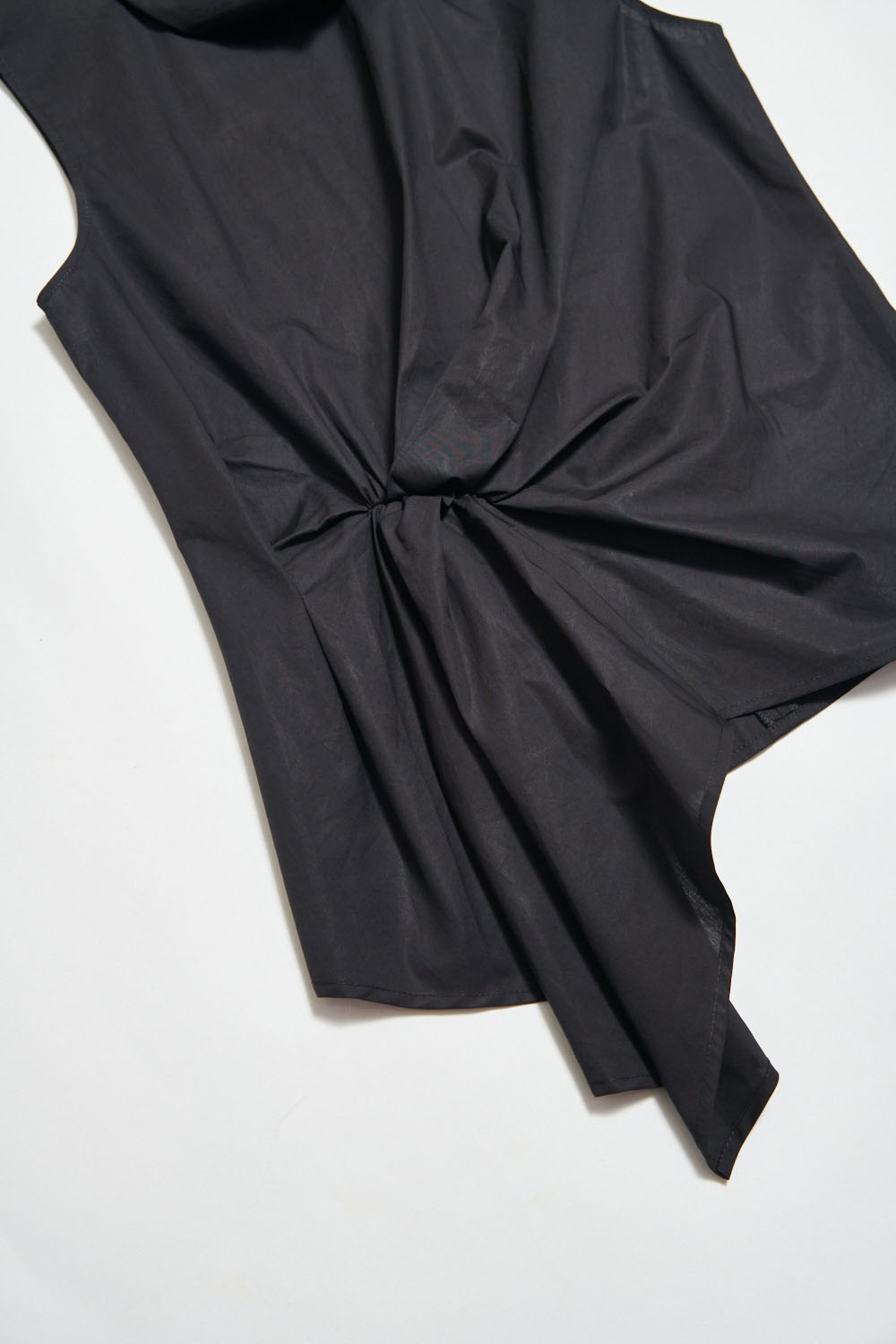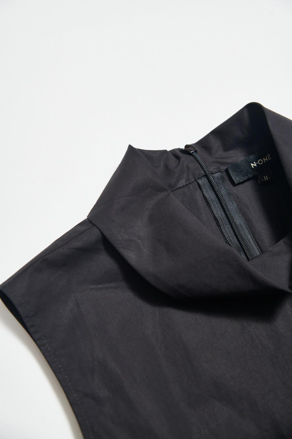 霧間尋境不規則垂墜下襬立領背心 - 神祕純黑, 36