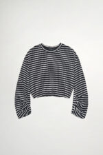 漫息充韻圓領百搭條紋長袖 - 神祕純黑, 36