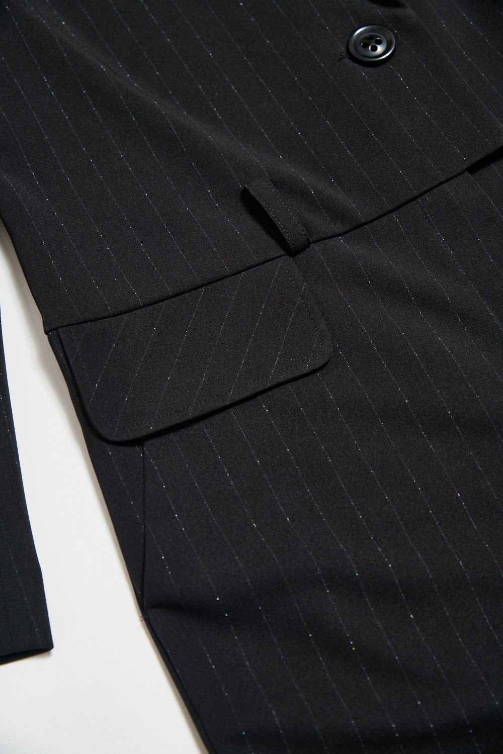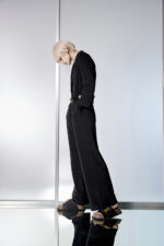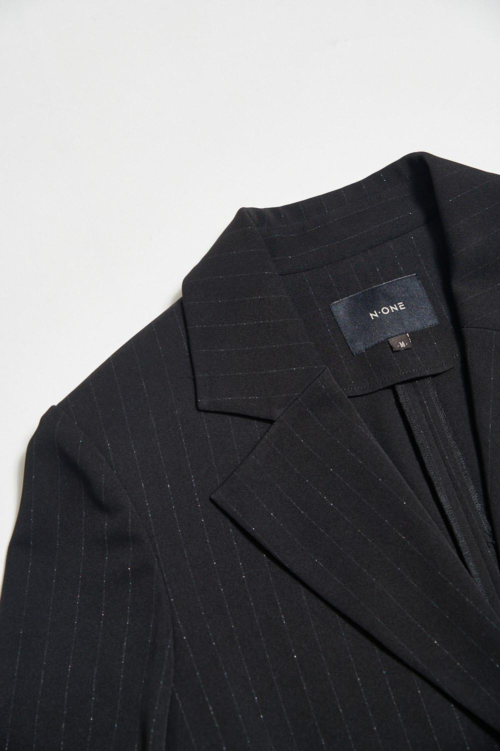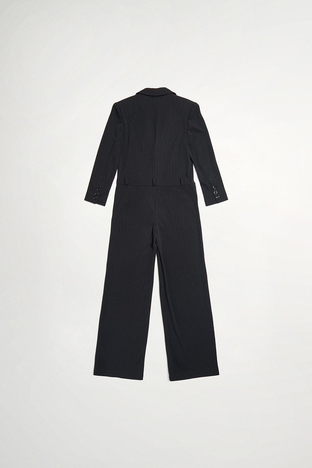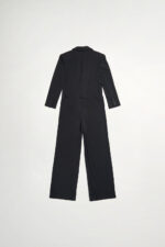 光謐見尋V領墊肩西裝連身寬褲 - 神祕純黑, 38