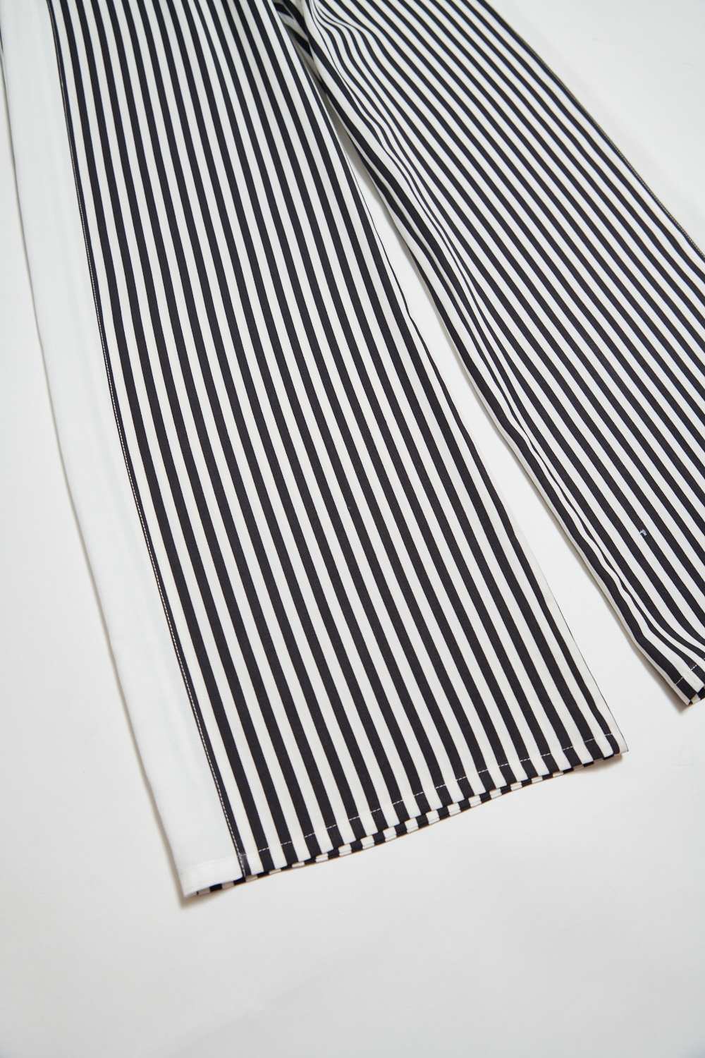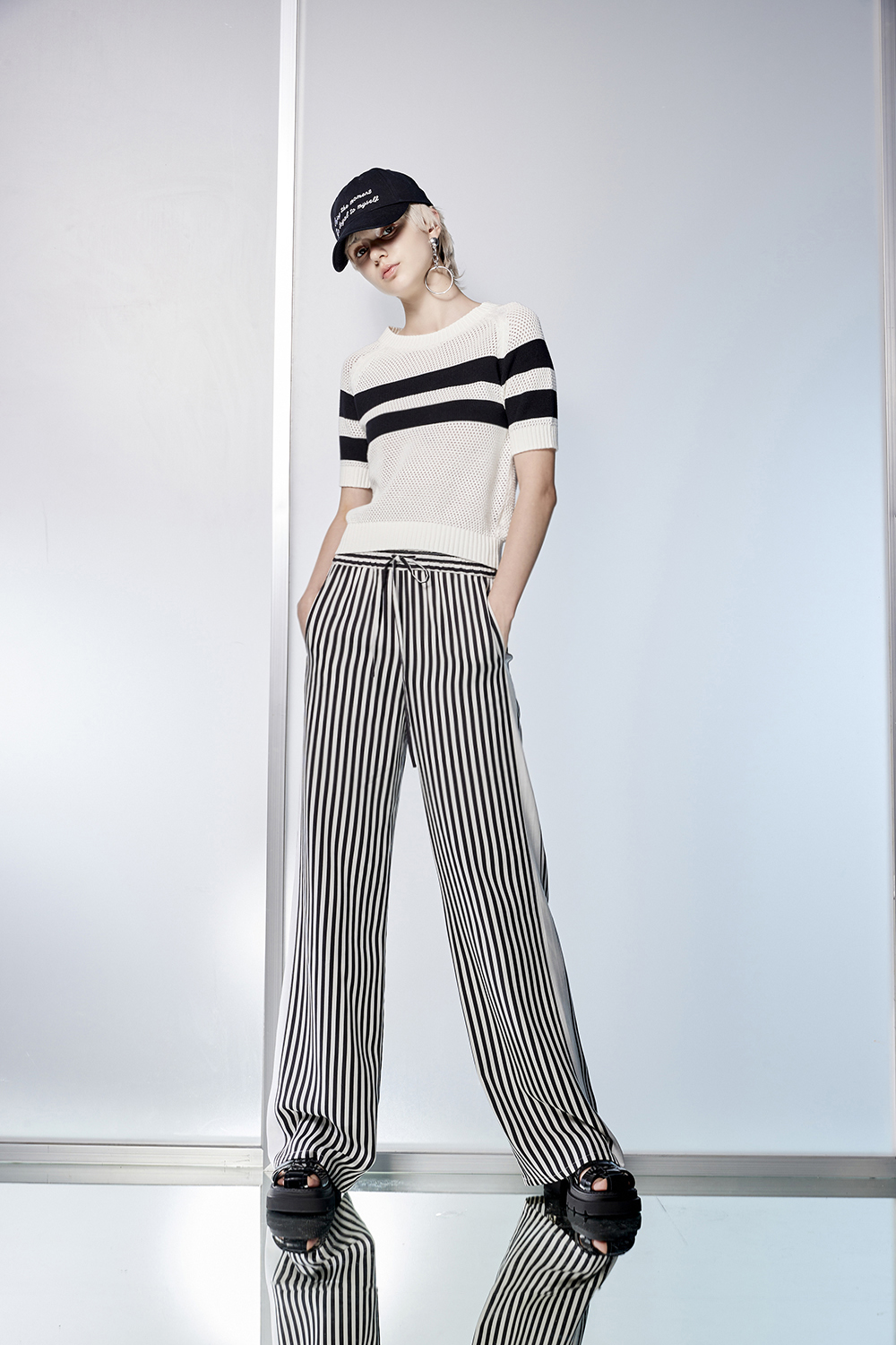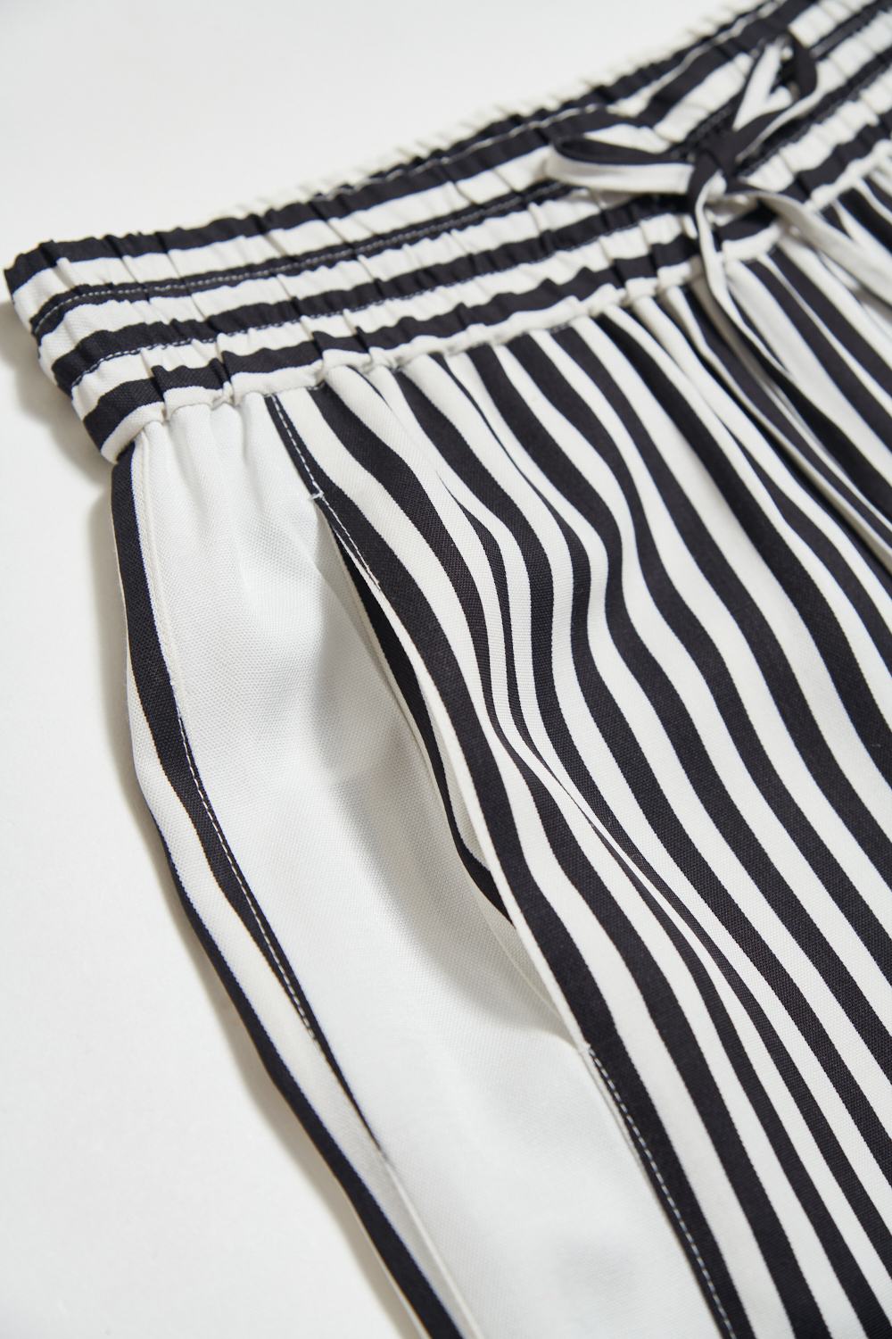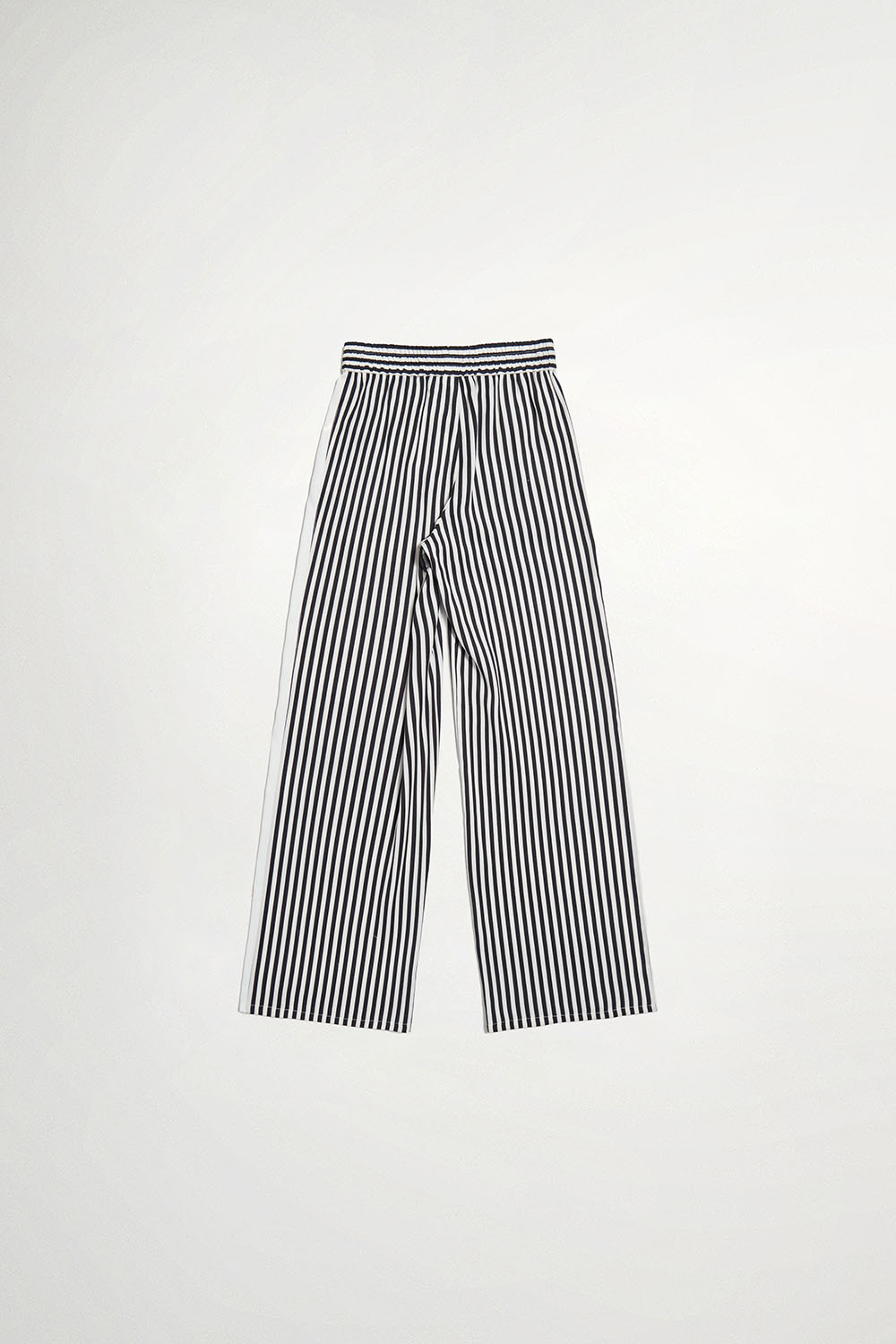 初醒感性條紋鬆緊落地寬褲 - 無瑕純白, 40