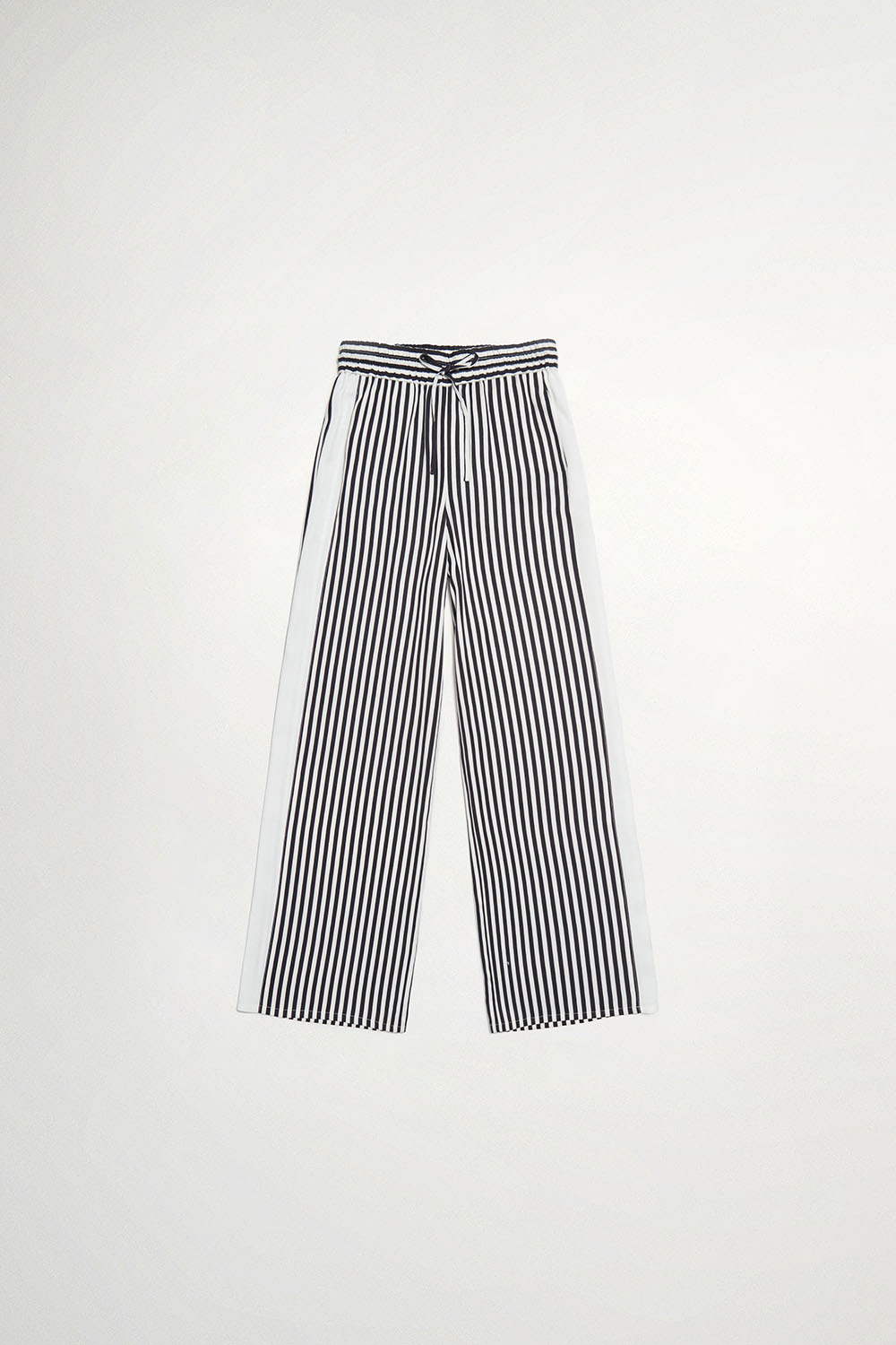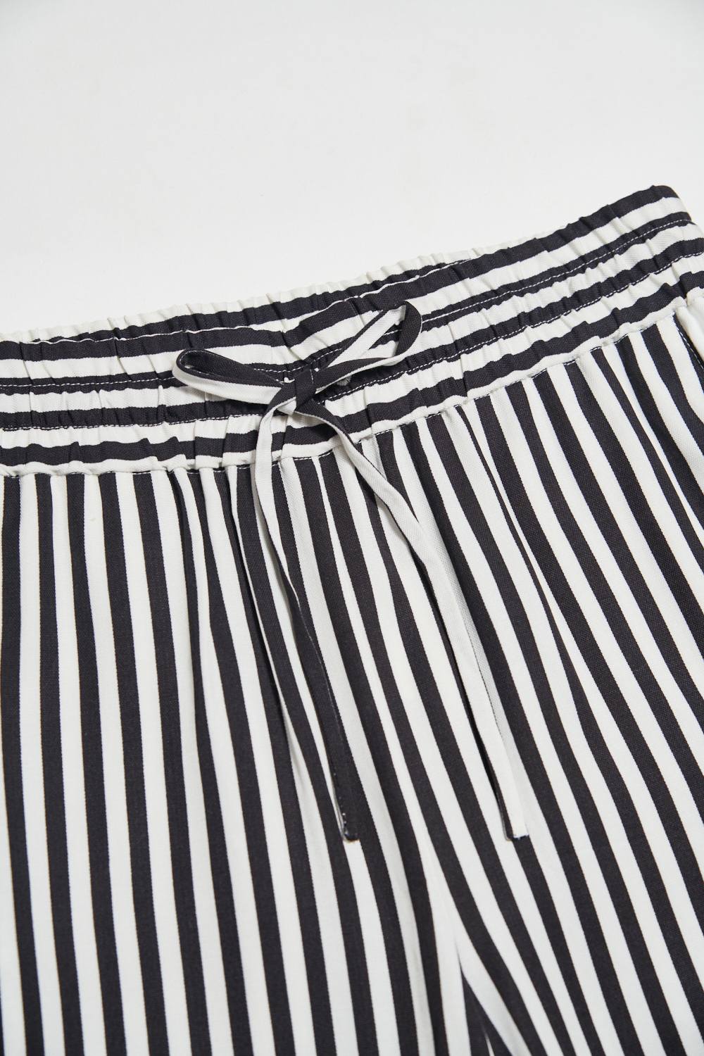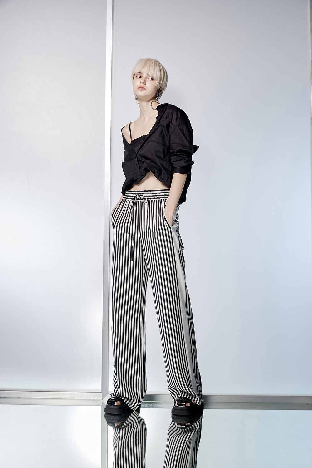 初醒感性條紋鬆緊落地寬褲 - 無瑕純白, 40