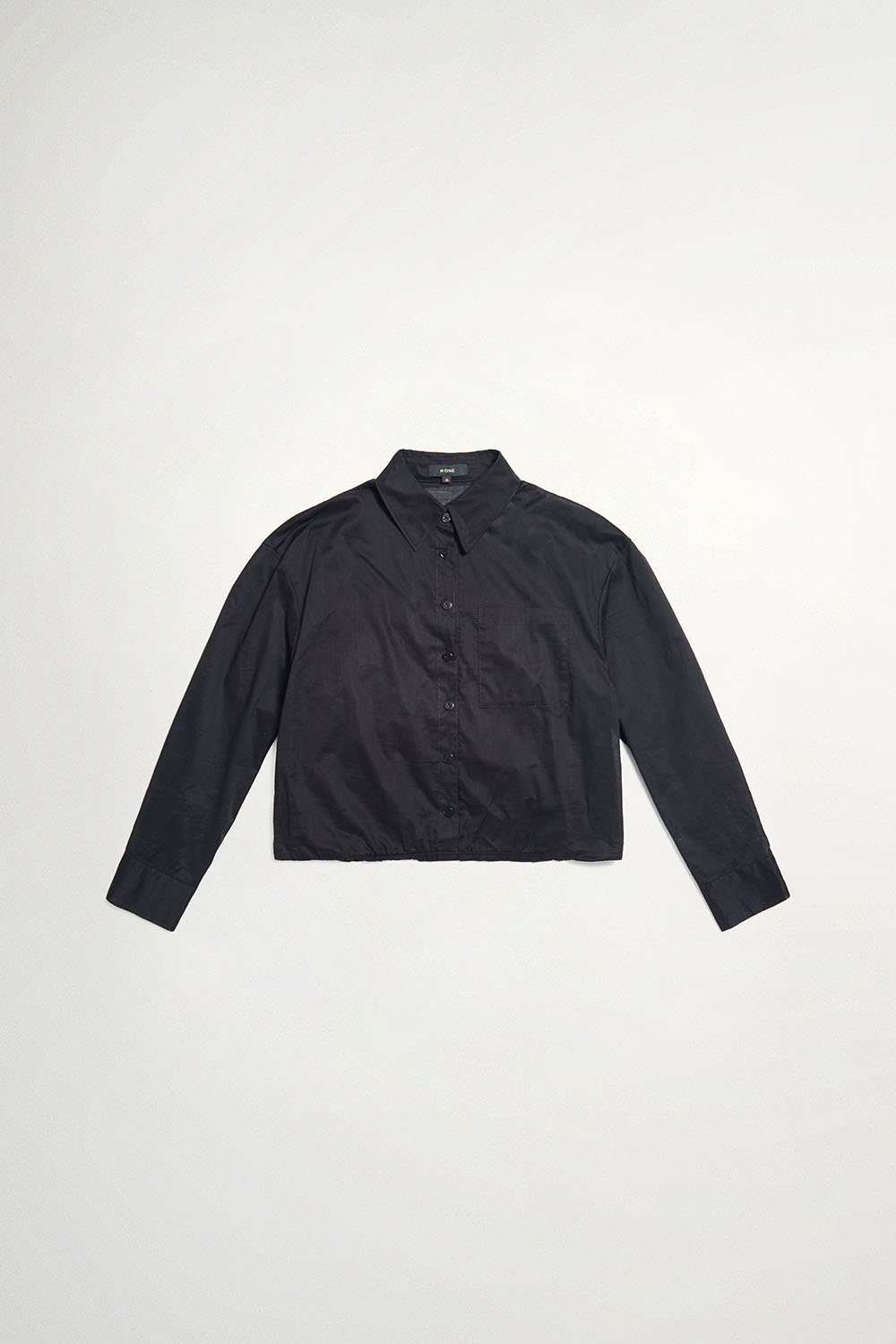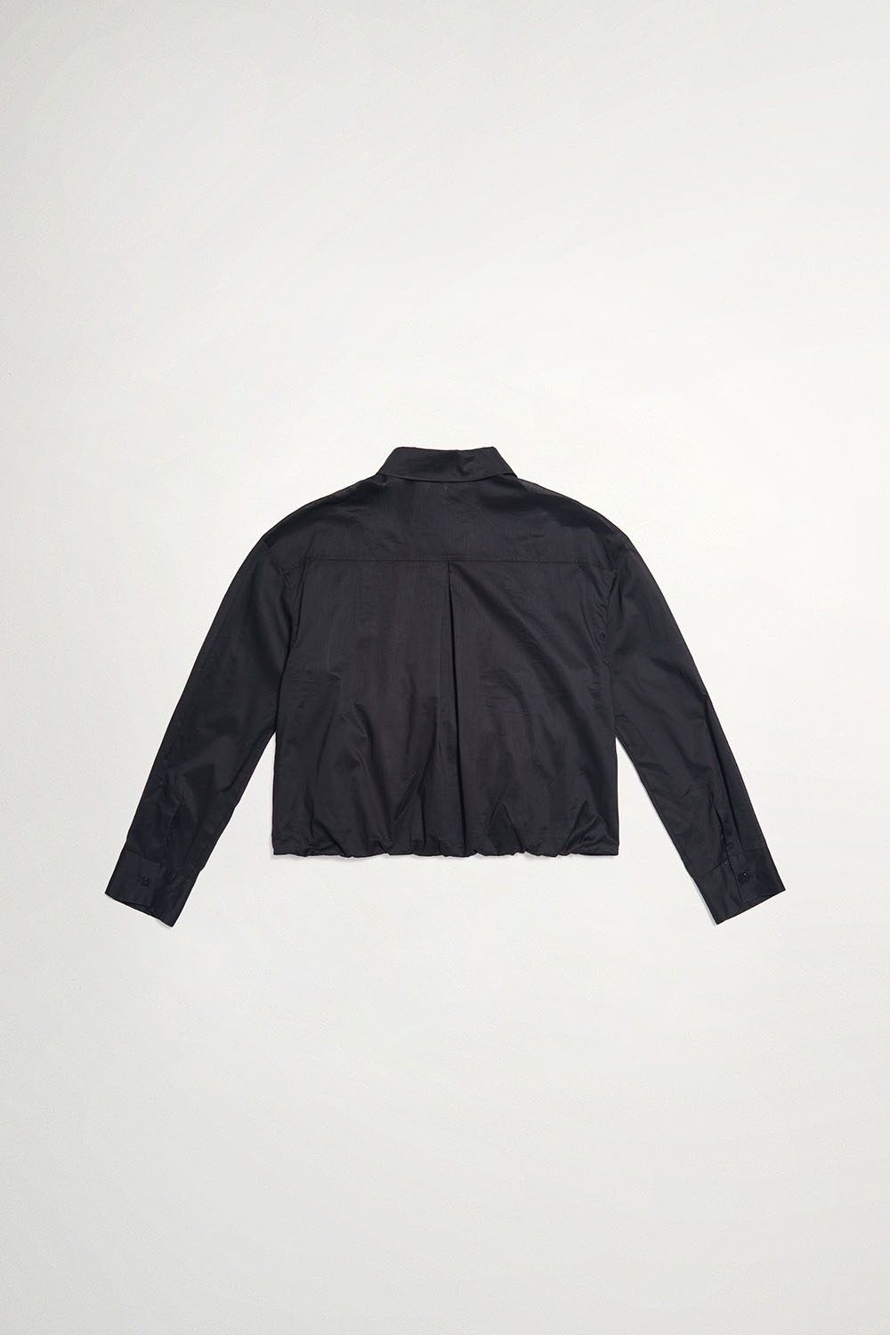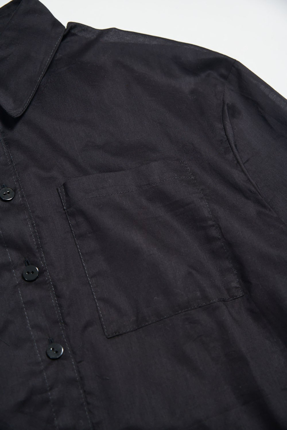 獨有溫感假兩件短版長袖襯衫 - 神祕純黑, 36