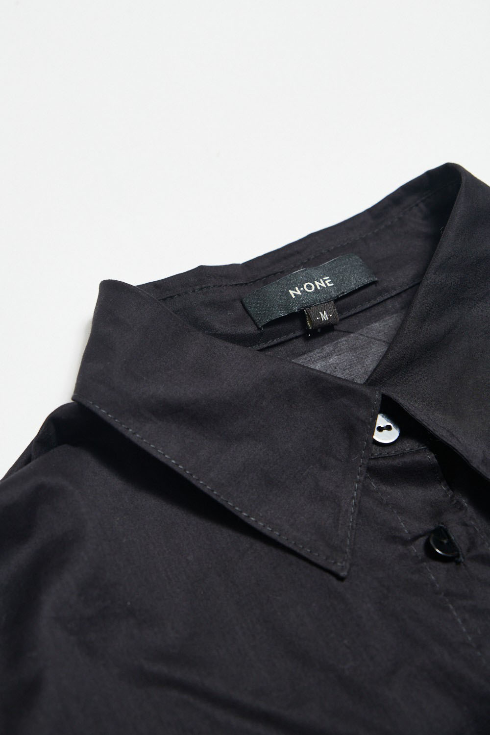獨有溫感假兩件短版長袖襯衫 - 神祕純黑, 38