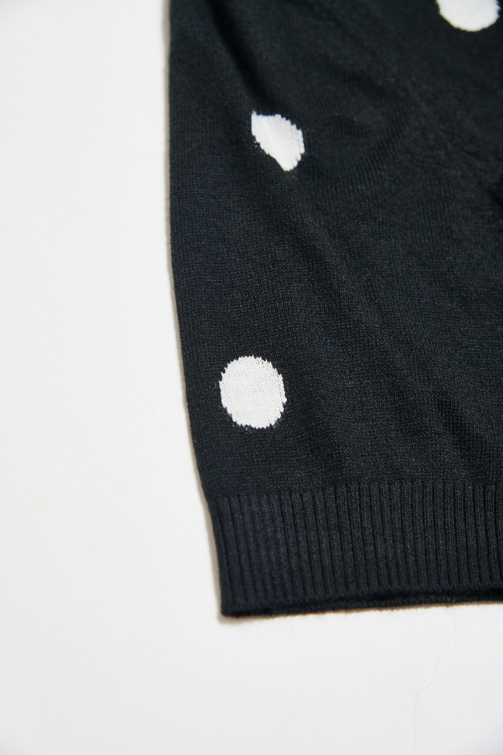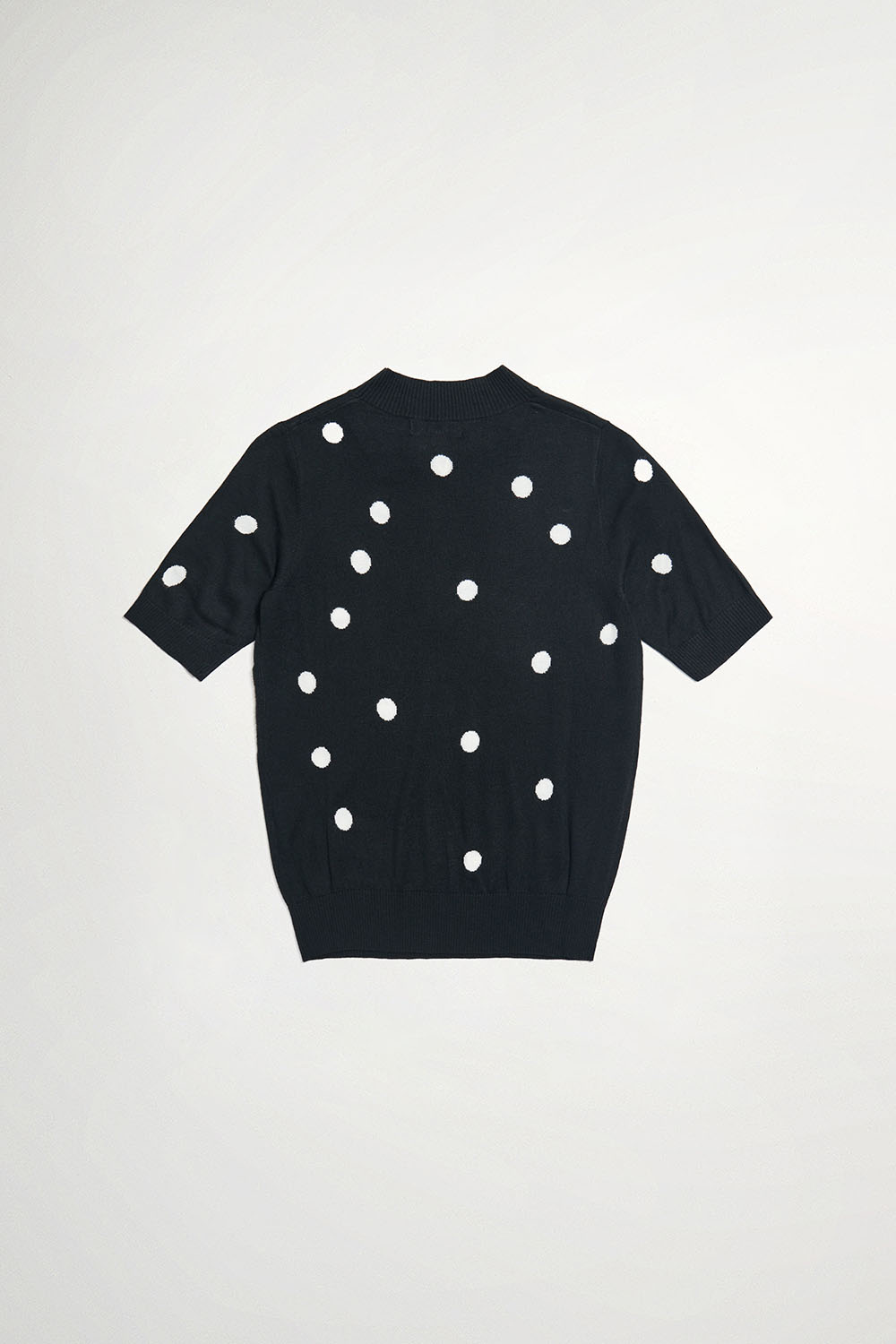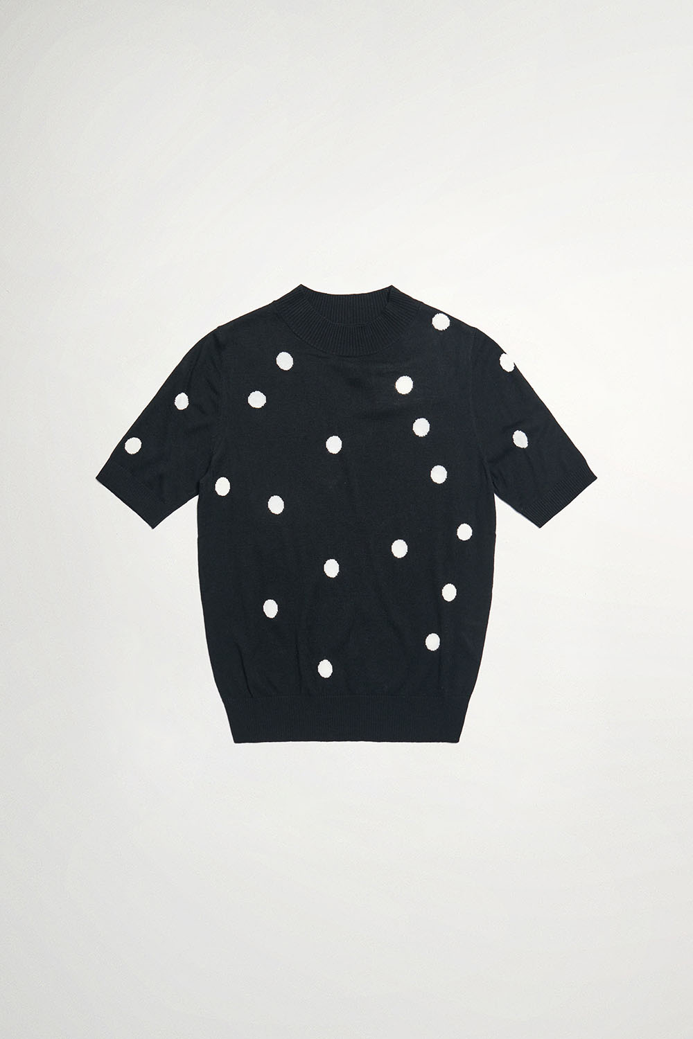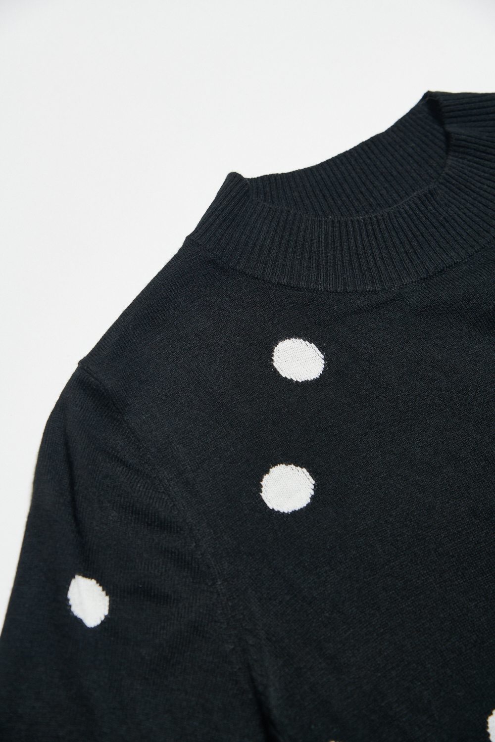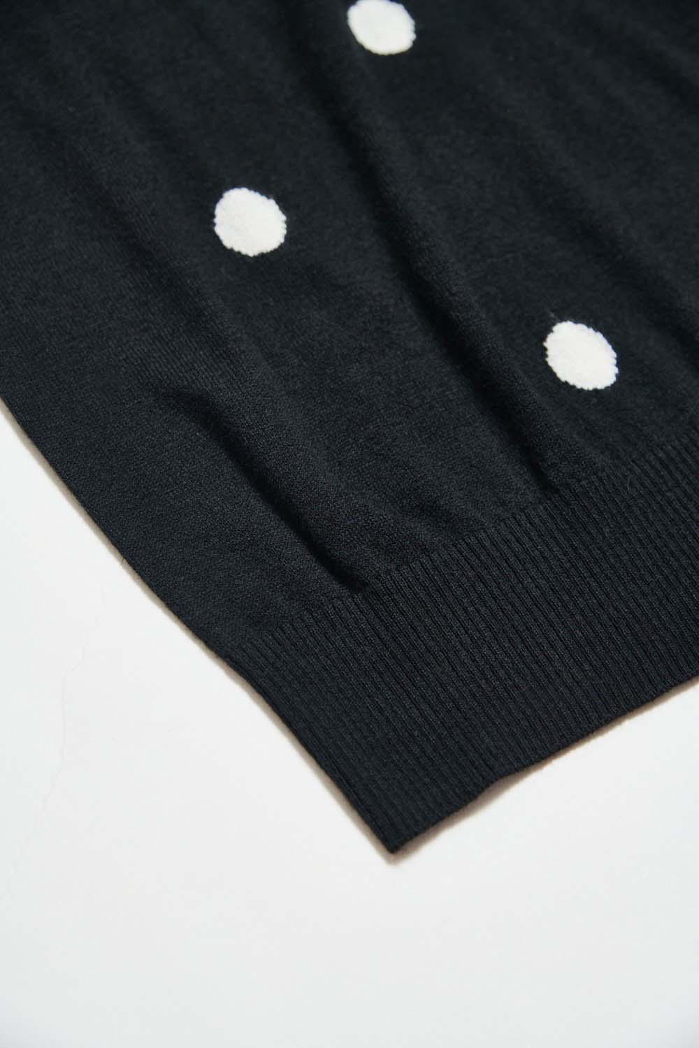 暖間秋覓圓點針織立領五分袖上衣 - 神祕純黑, 38