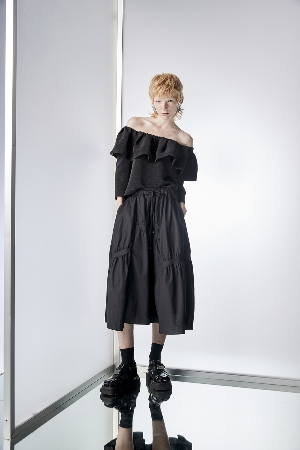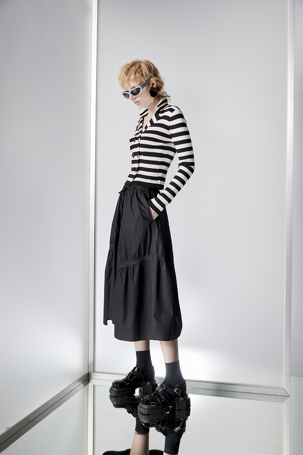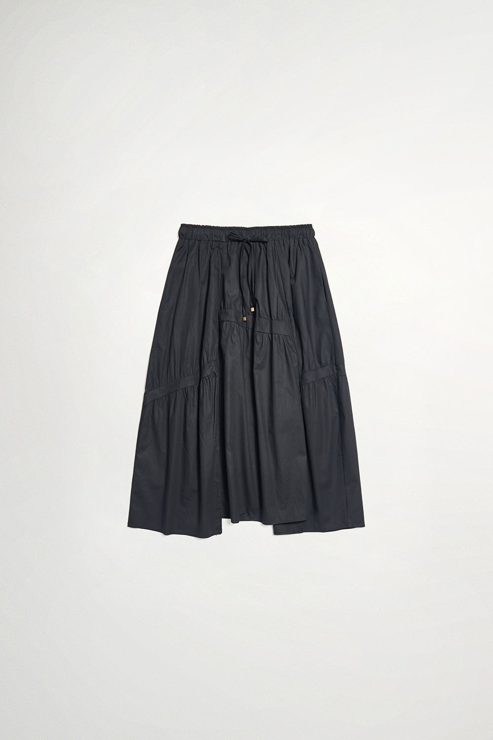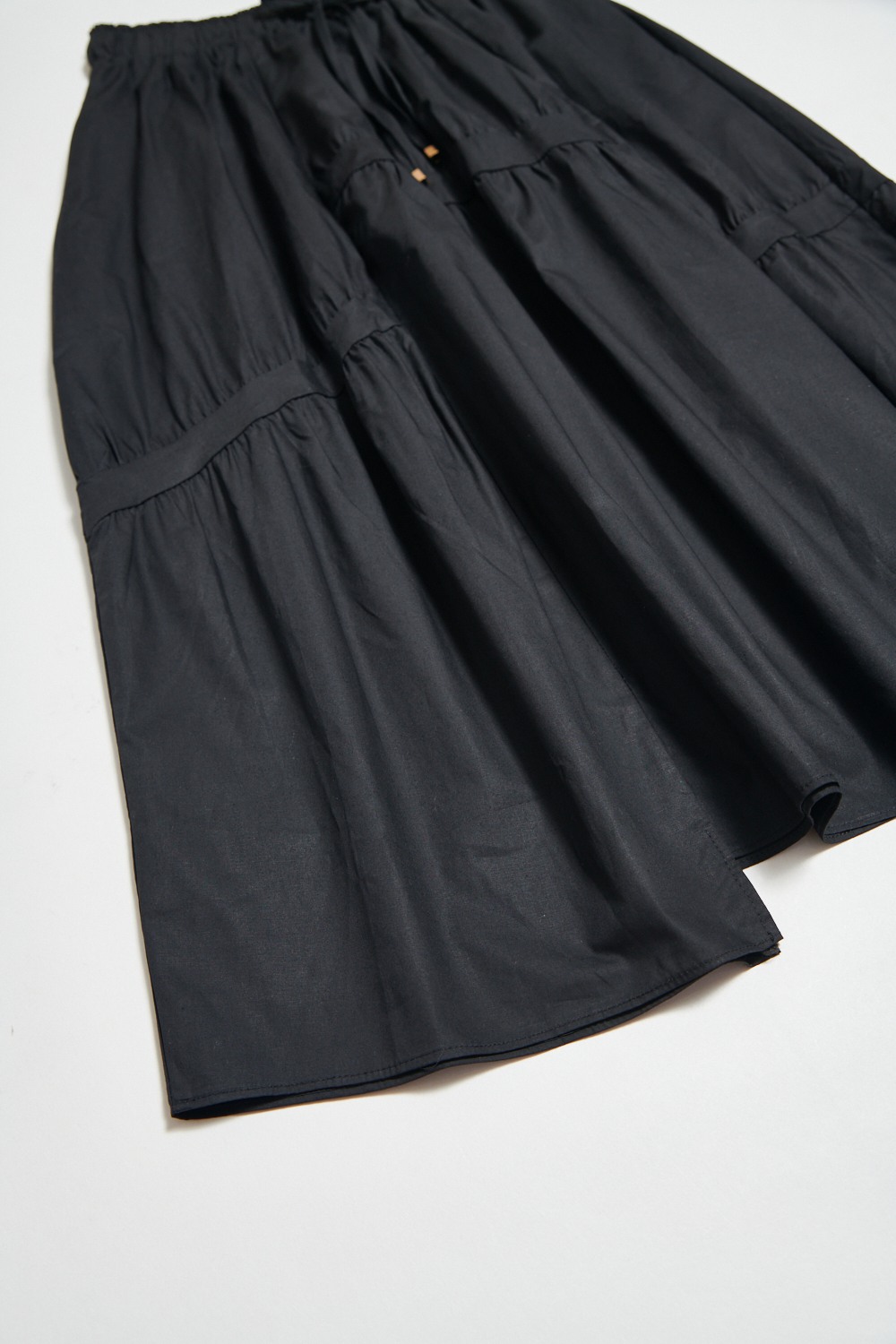 慢息詮釋不規則高腰細褶鬆緊長裙 - 神祕純黑, F
