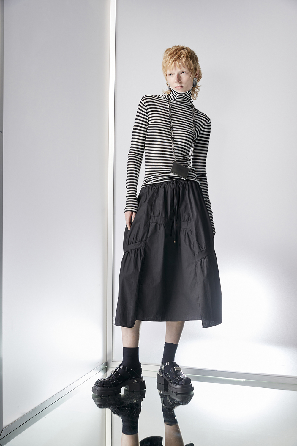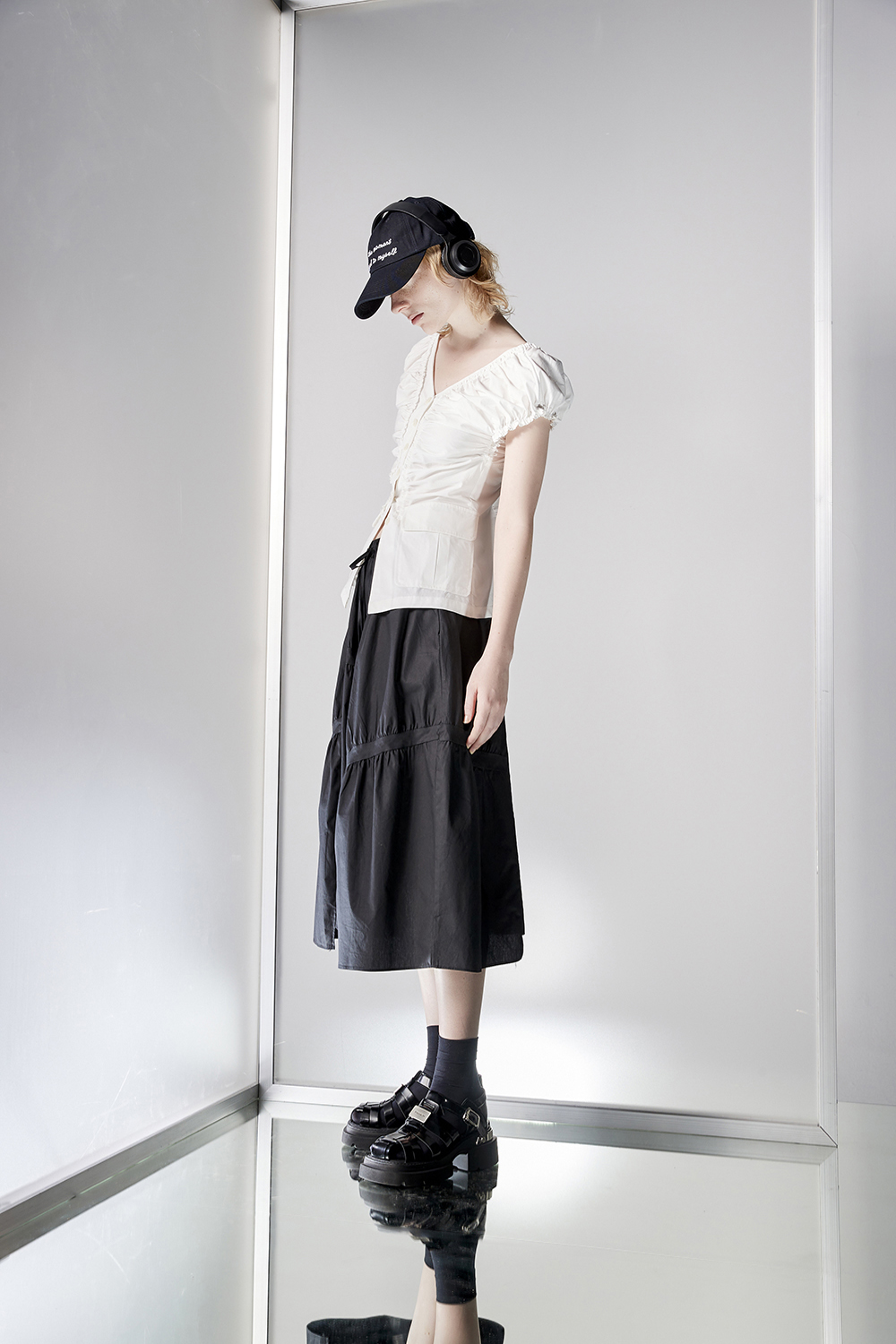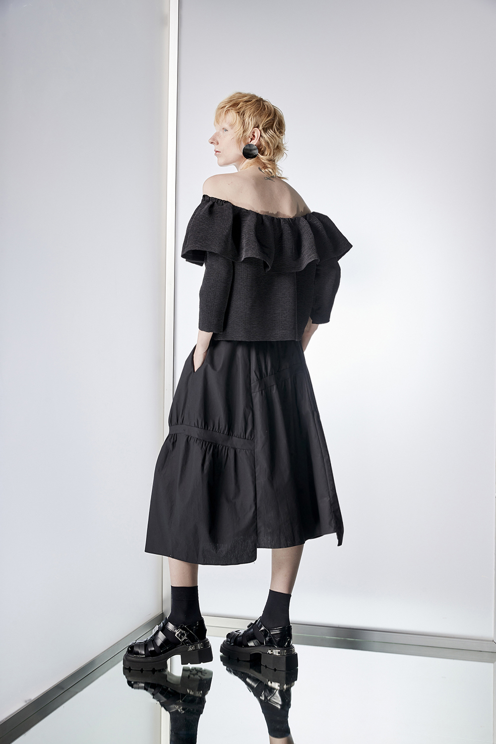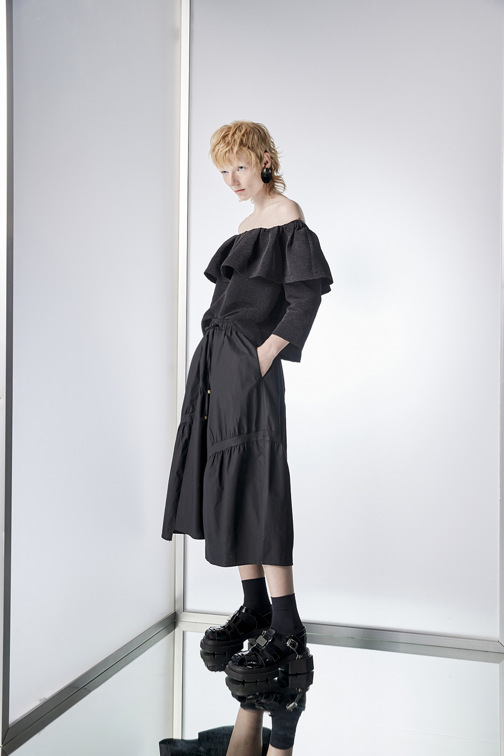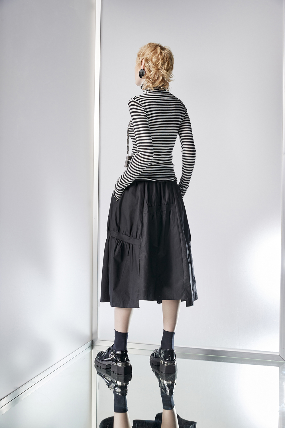 慢息詮釋不規則高腰細褶鬆緊長裙 - 神祕純黑, F
