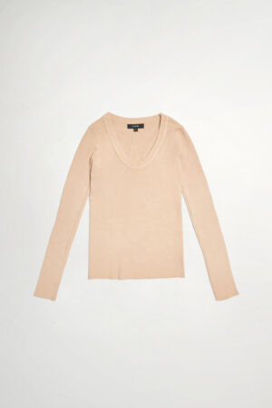 賦暖映光圓領針織長袖打底衣 - 可可卡其, F