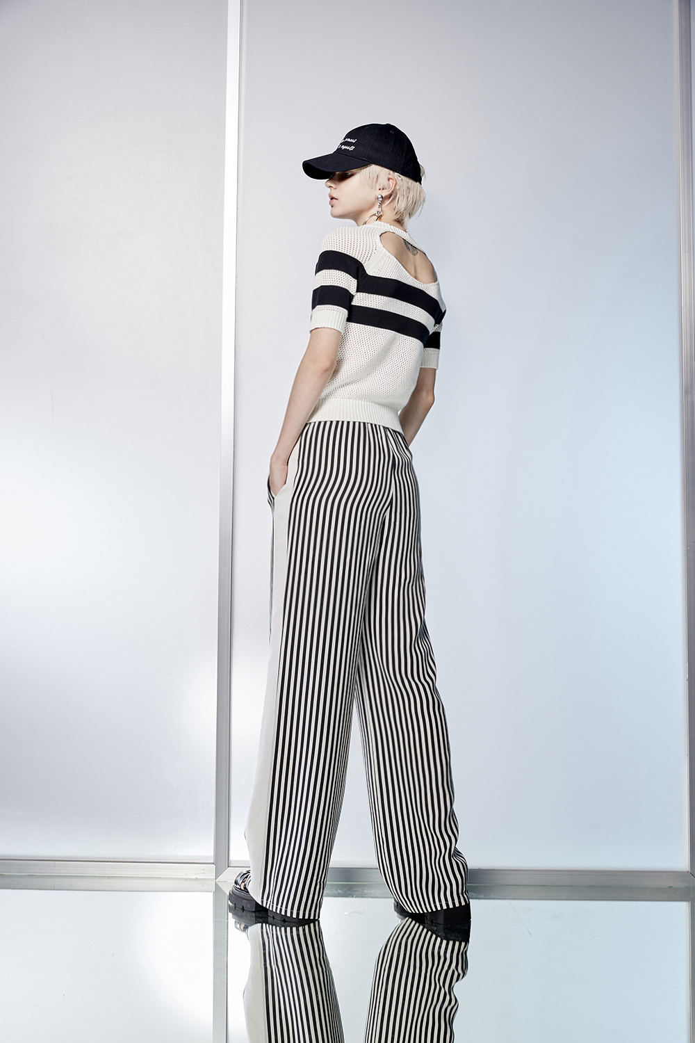 輕映存在條紋鏤空圓領五分袖上衣 - 無瑕純白, 40