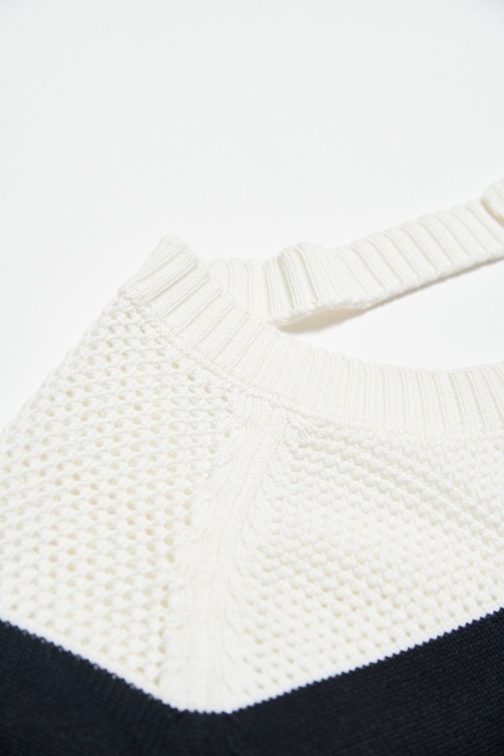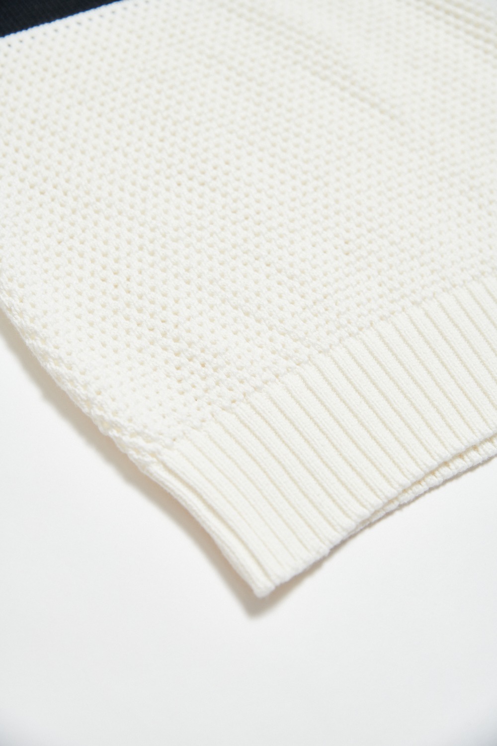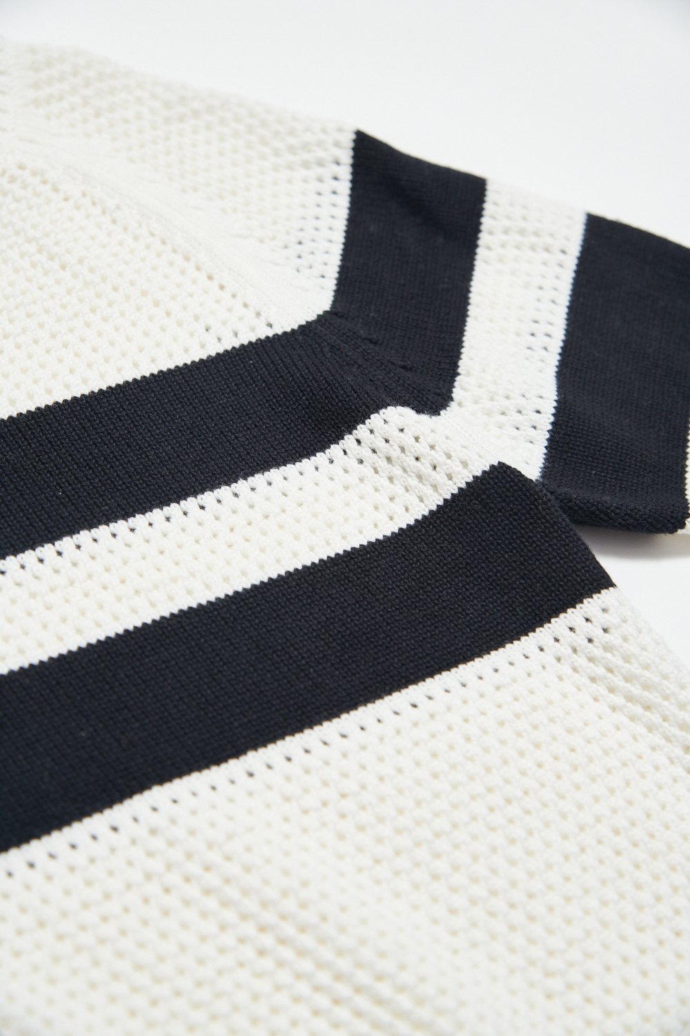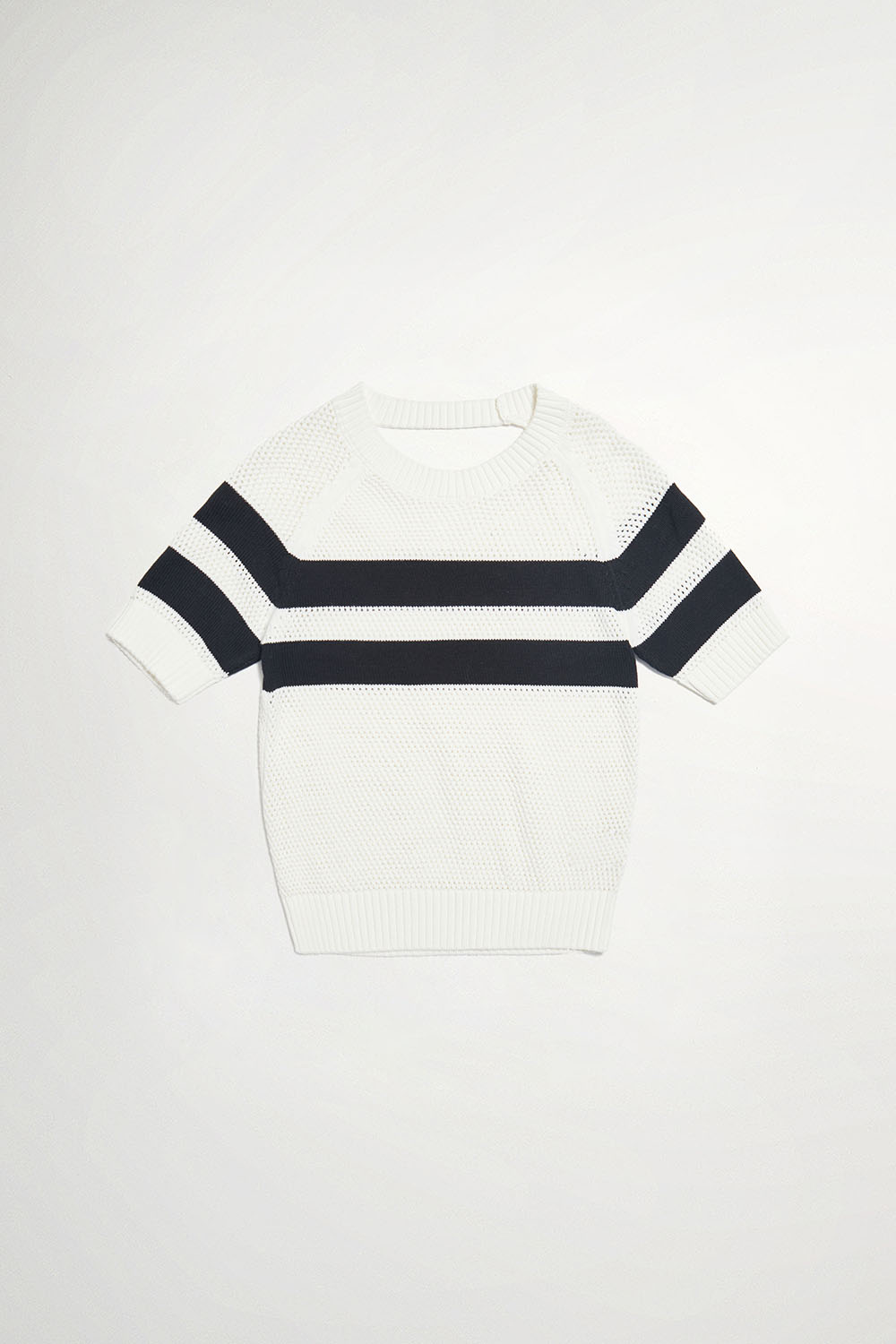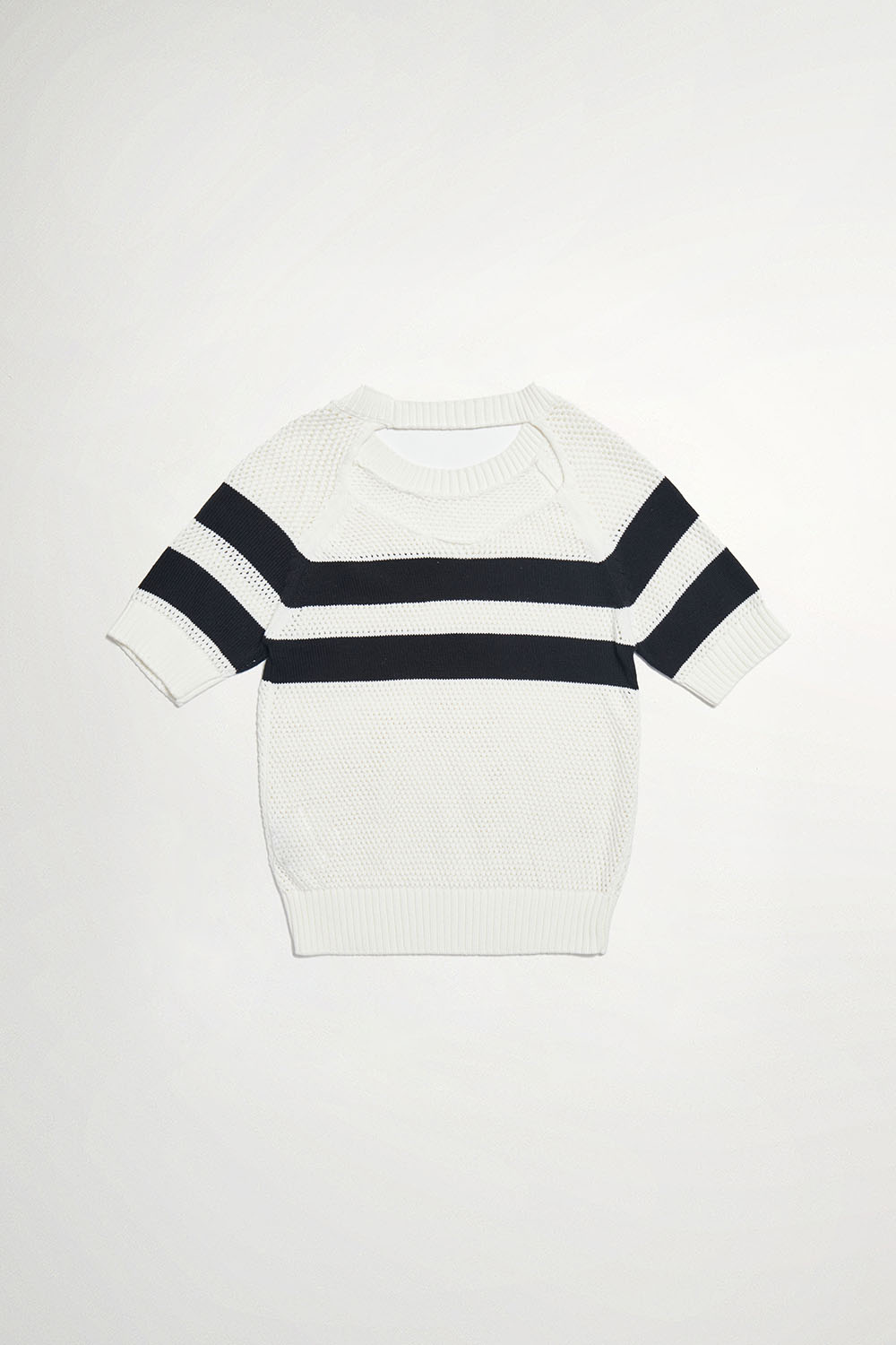 輕映存在條紋鏤空圓領五分袖上衣 - 無瑕純白, 38