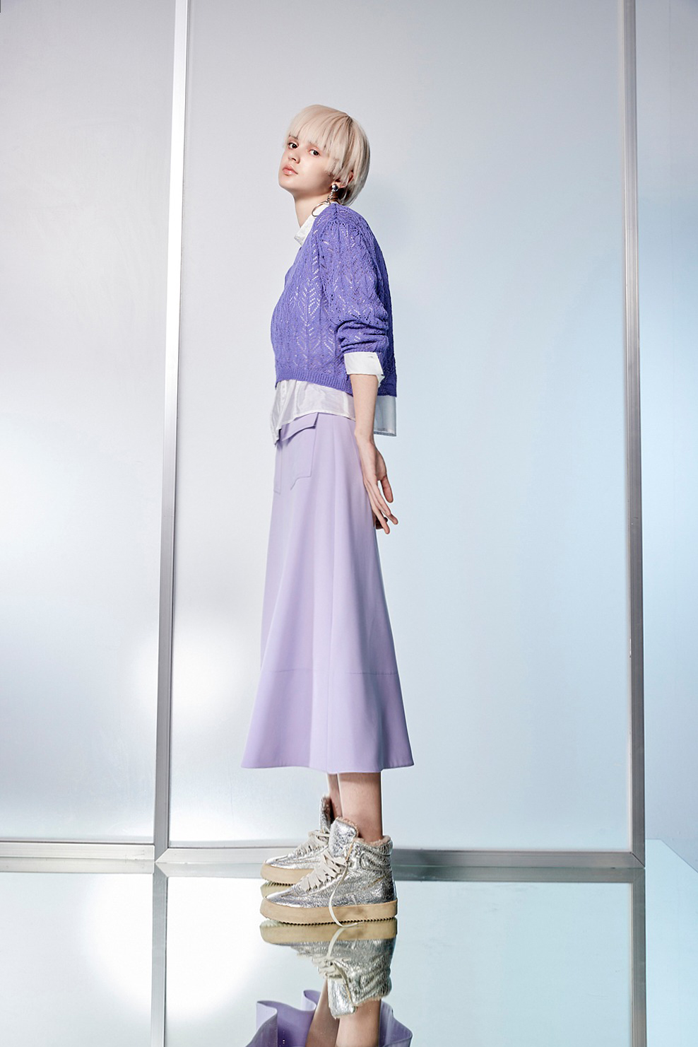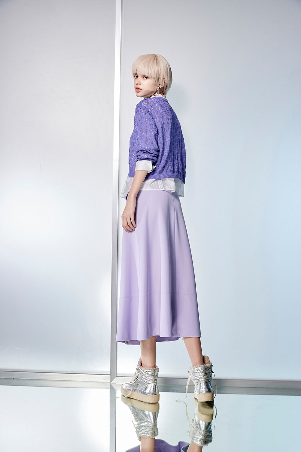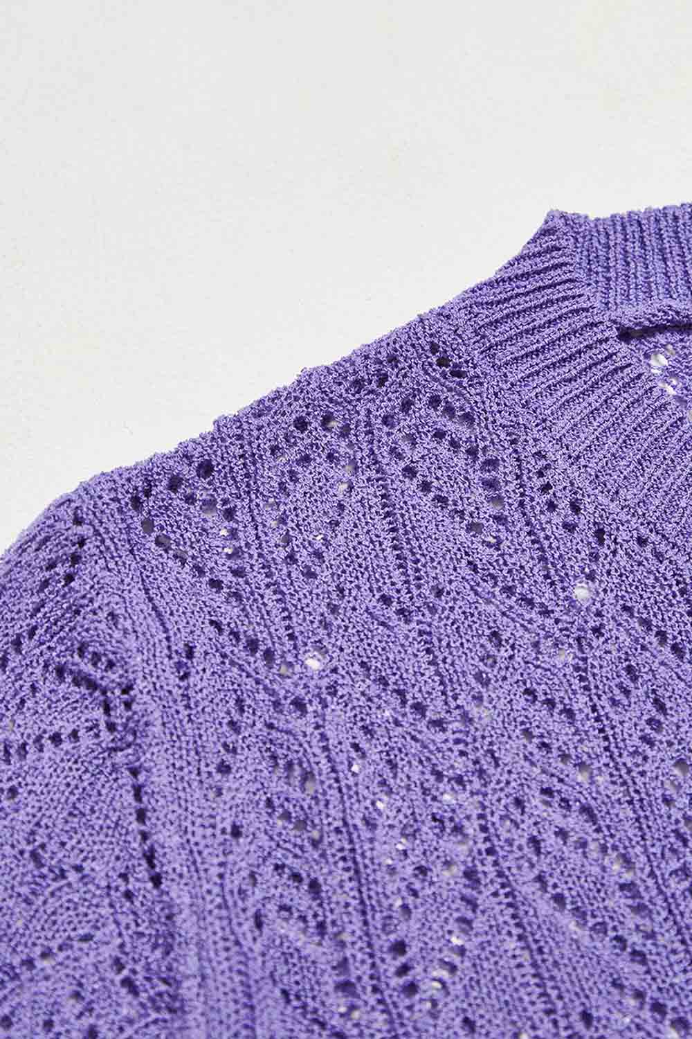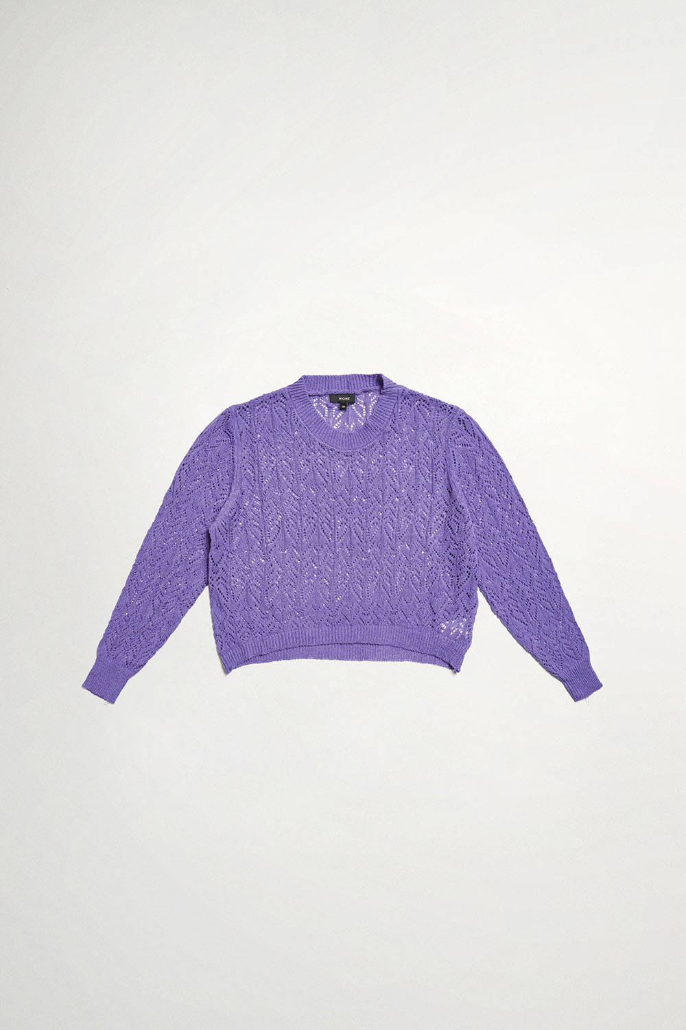 自若慢活鏤空圓領菱格紋針織上衣 - 薰衣草紫, 40