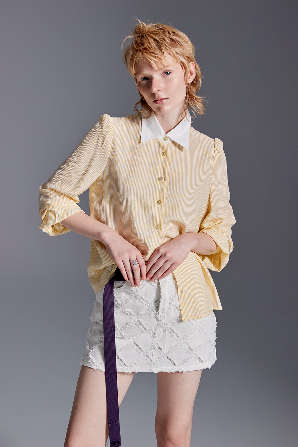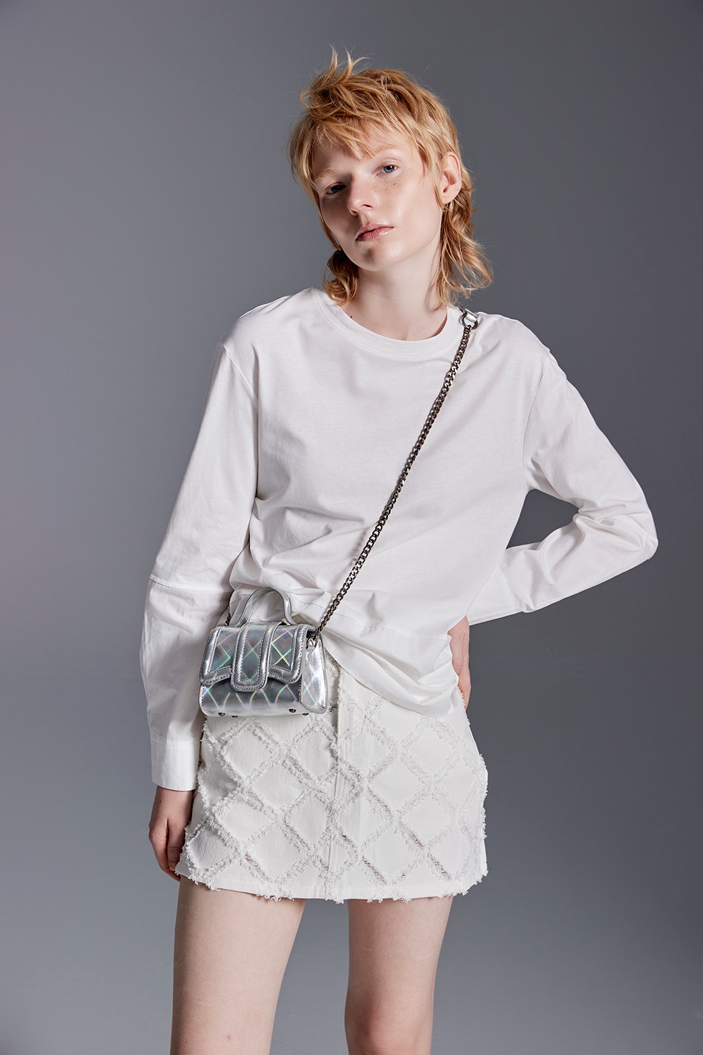 秘想沐然菱格壓紋高腰短裙 - 無瑕純白, 40