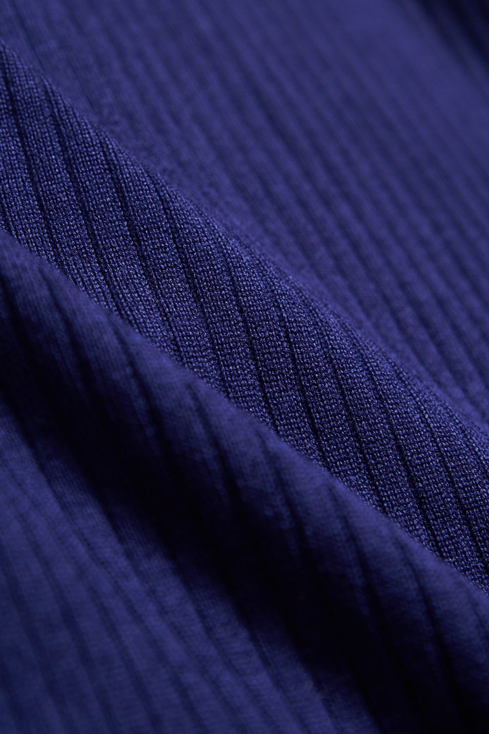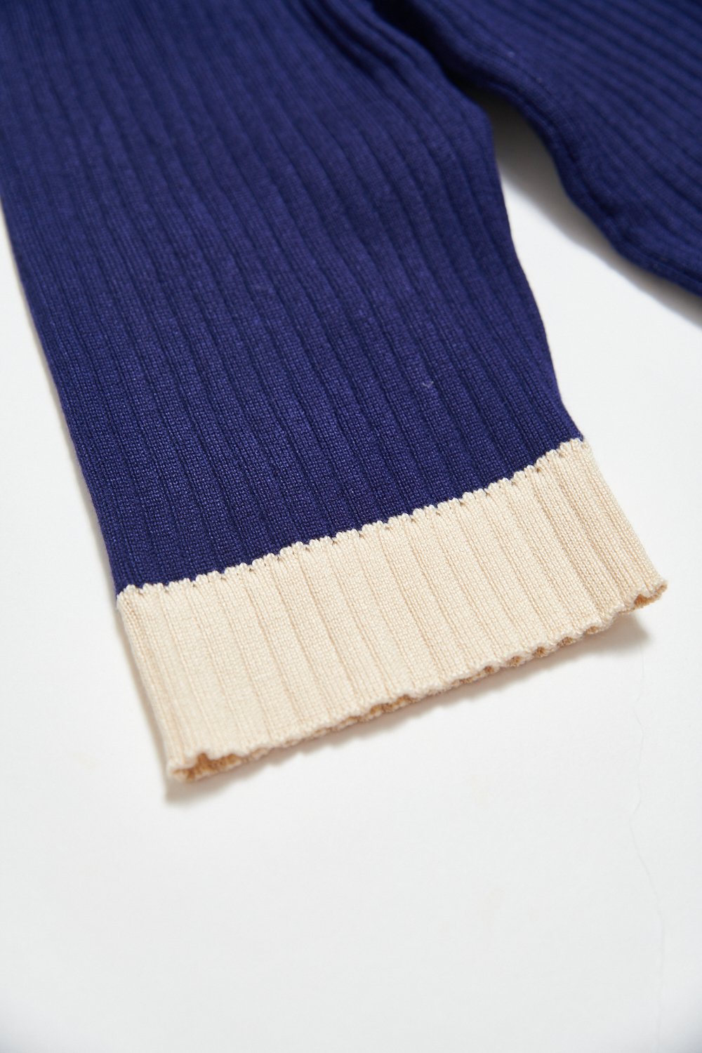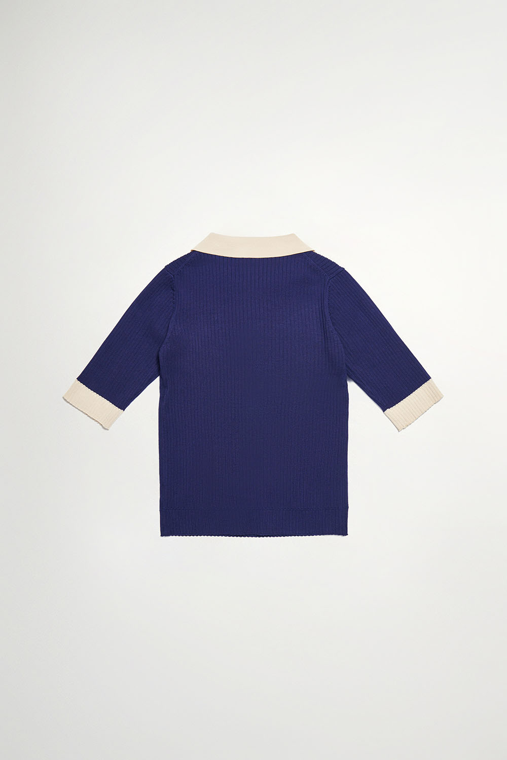 尋間呢喃拼色五分袖鈕釦上衣 - 深邃藏藍, F