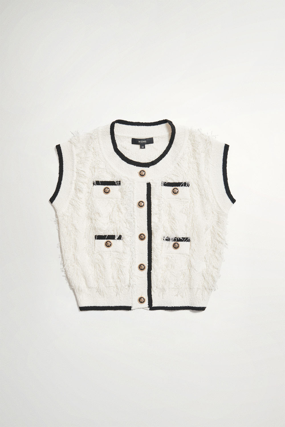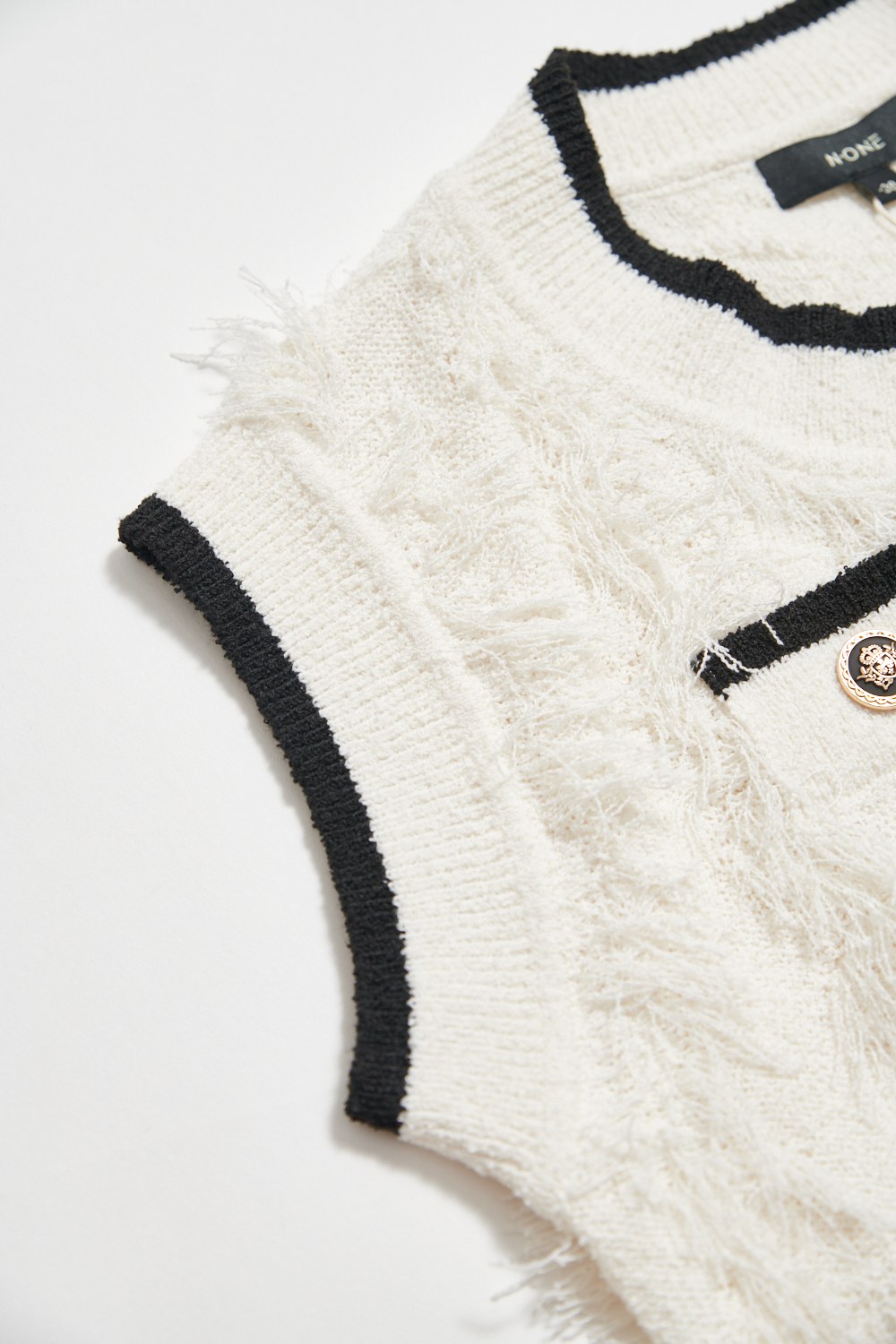 法式小香流蘇款針織背心 - 無瑕純白, 38