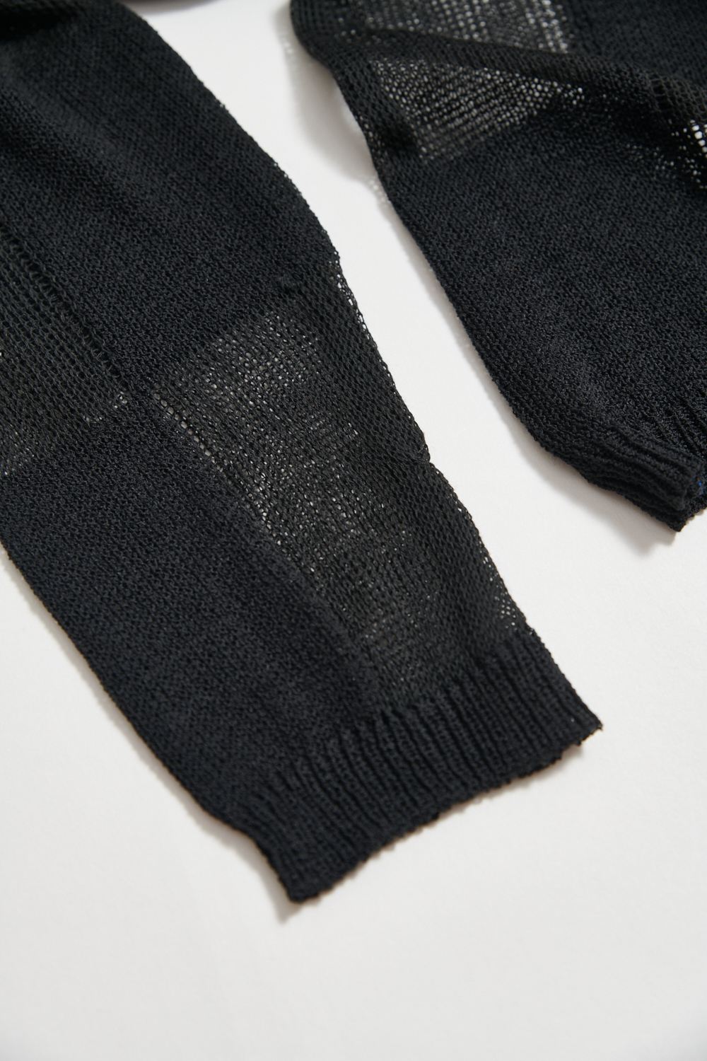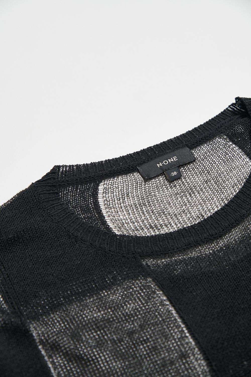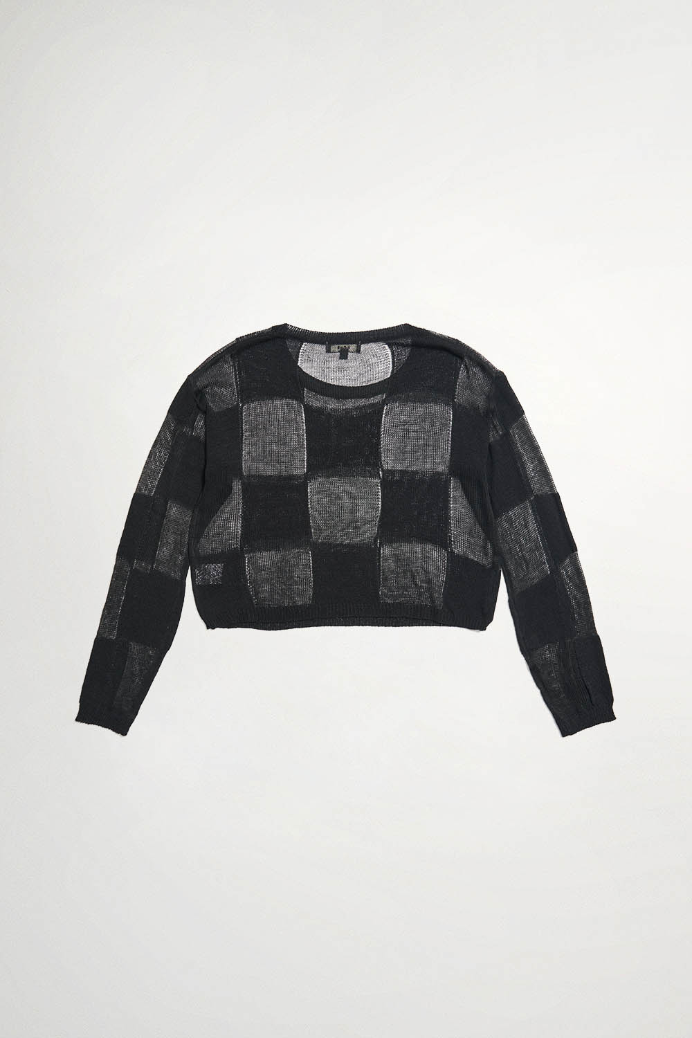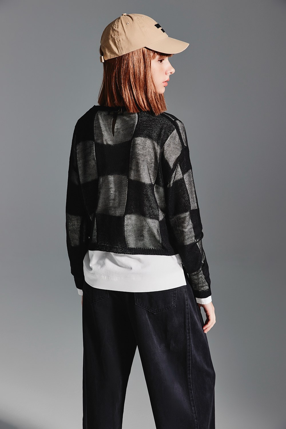 透膚拼色黑白方格針織上衣 - 神祕純黑, 40