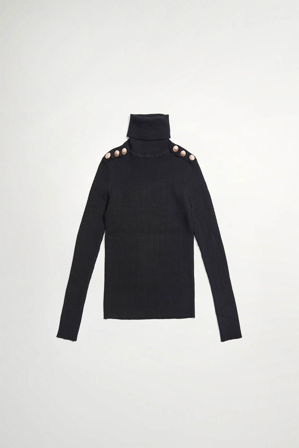 法式簡約金釦小高領針織上衣(黑&白&棕) - 神祕純黑, F