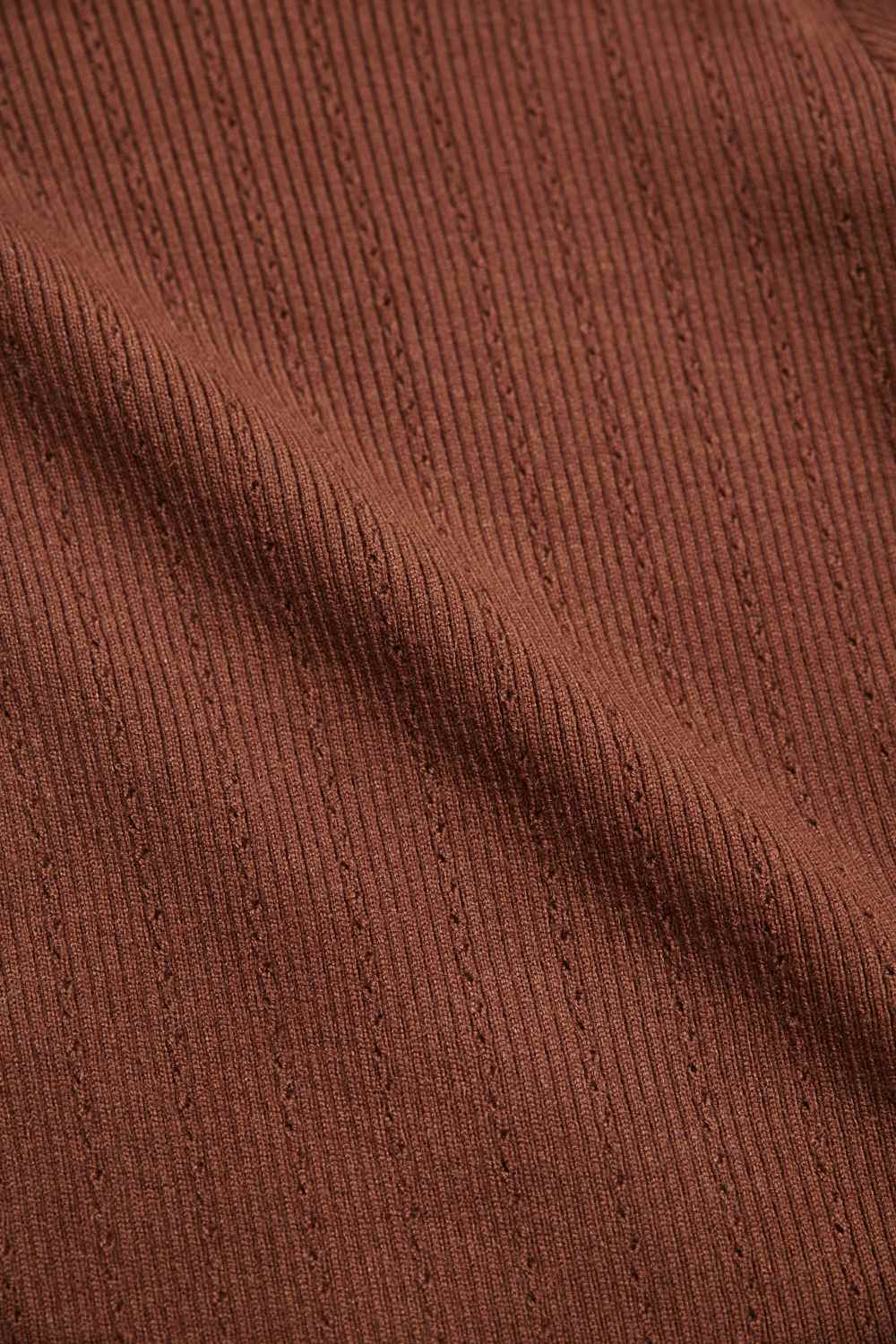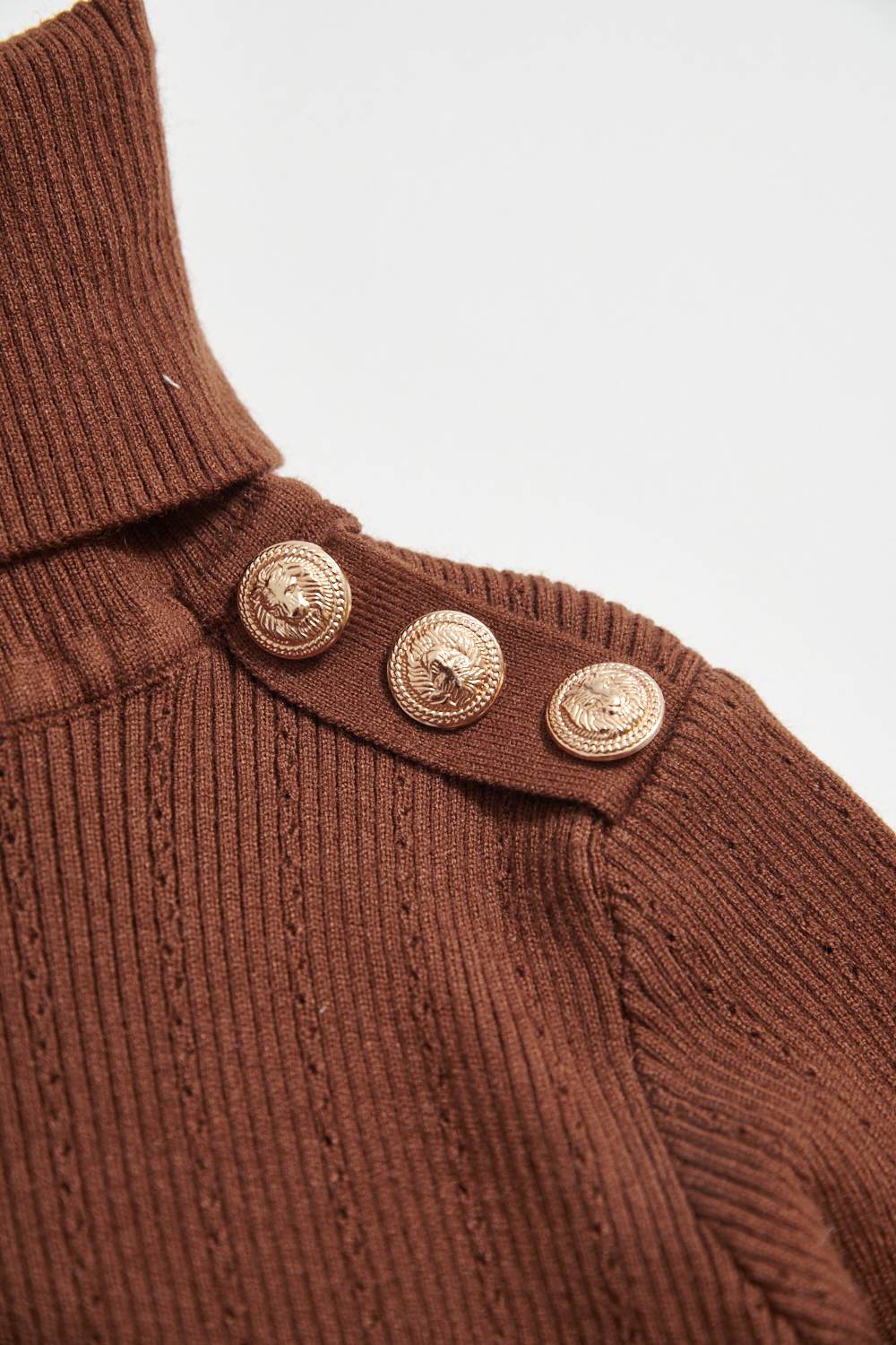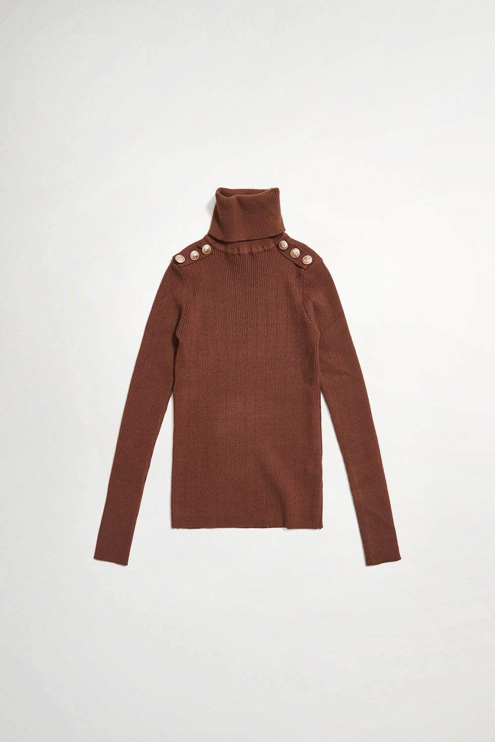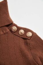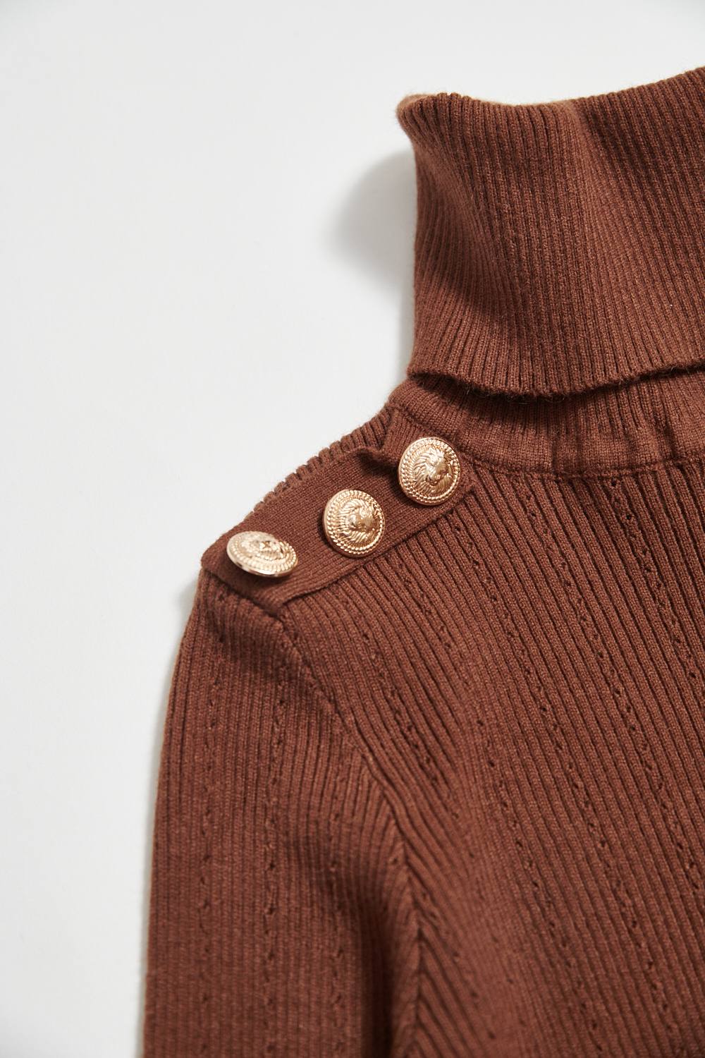 法式簡約金釦小高領針織上衣(黑&白&棕) - 琥珀棕色, F