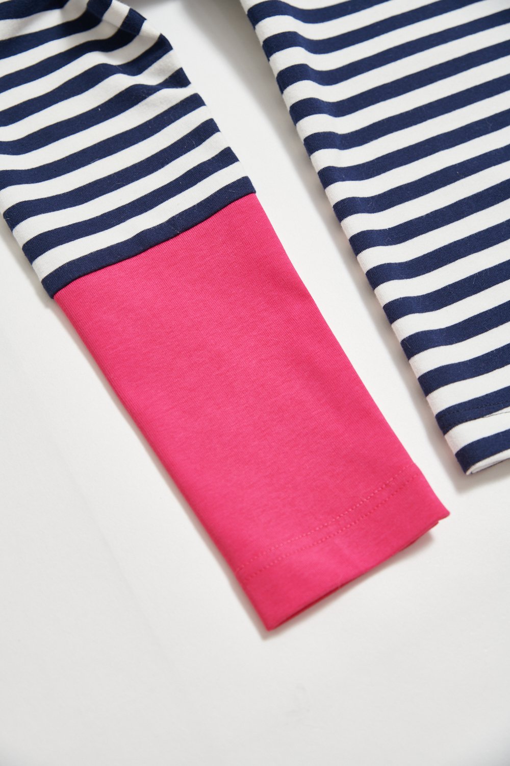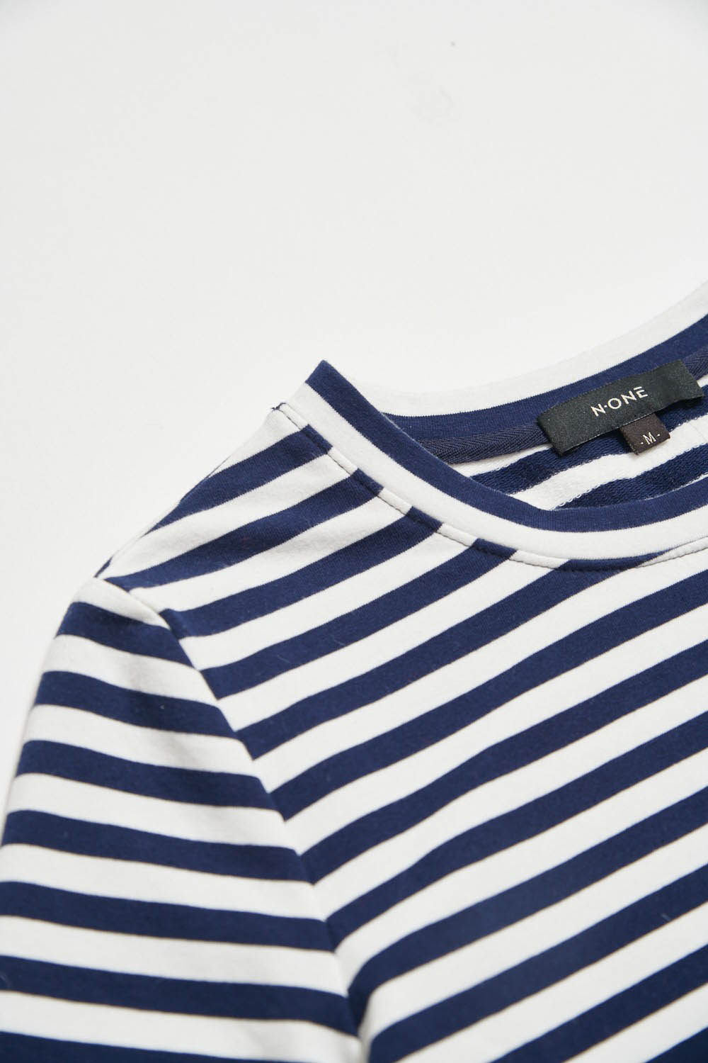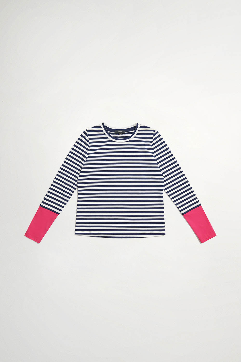 百搭圓領撞色條紋上衣 - 寧靜黛藍, 38