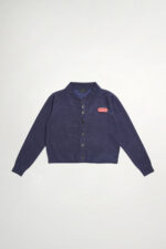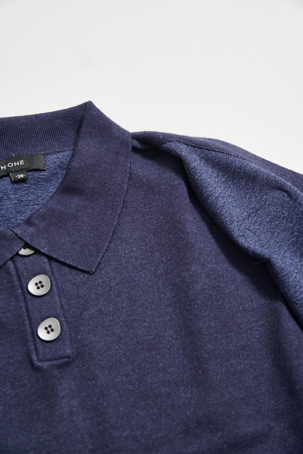 百搭排釦開領假兩件針織上衣 - 深邃藏藍, 40