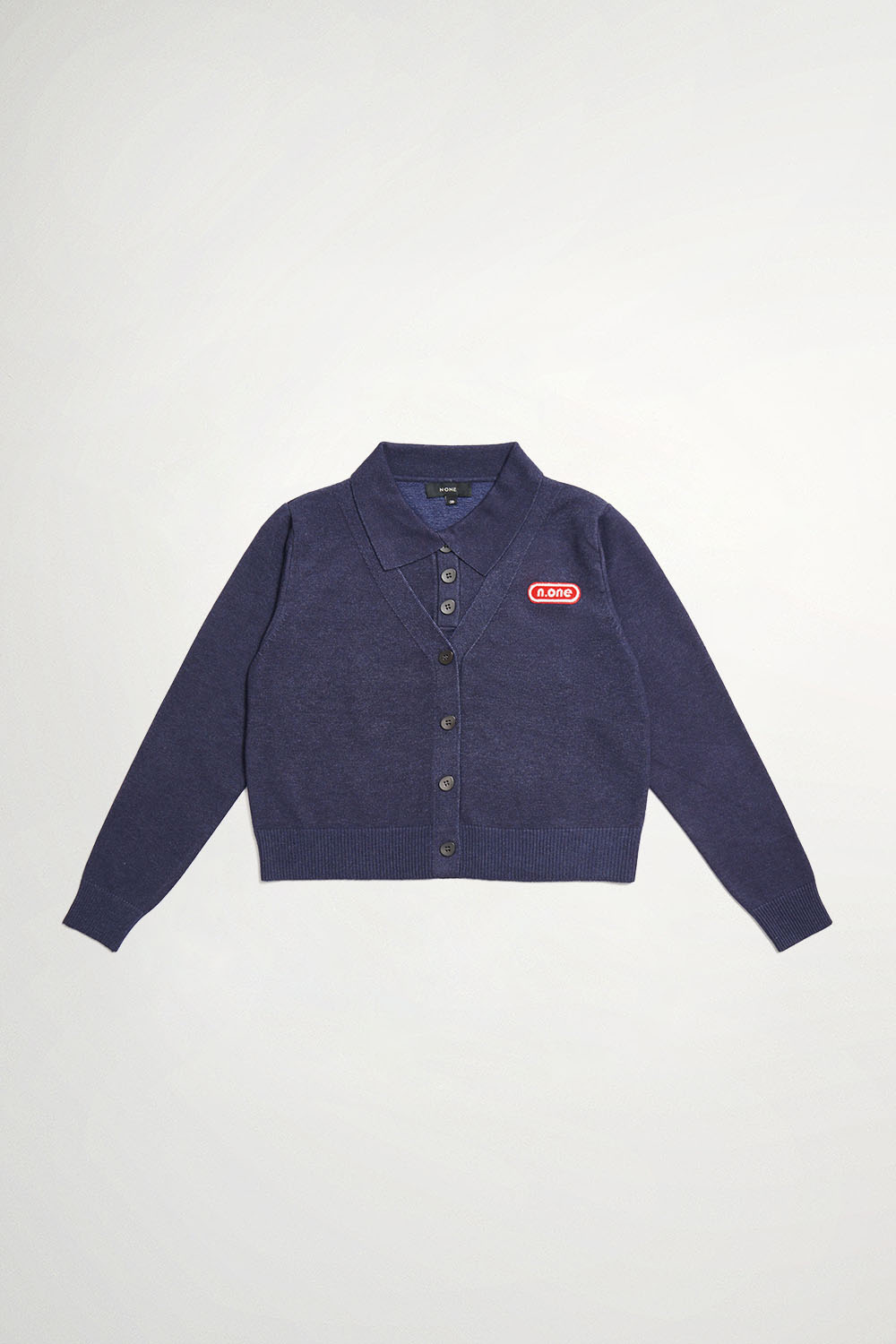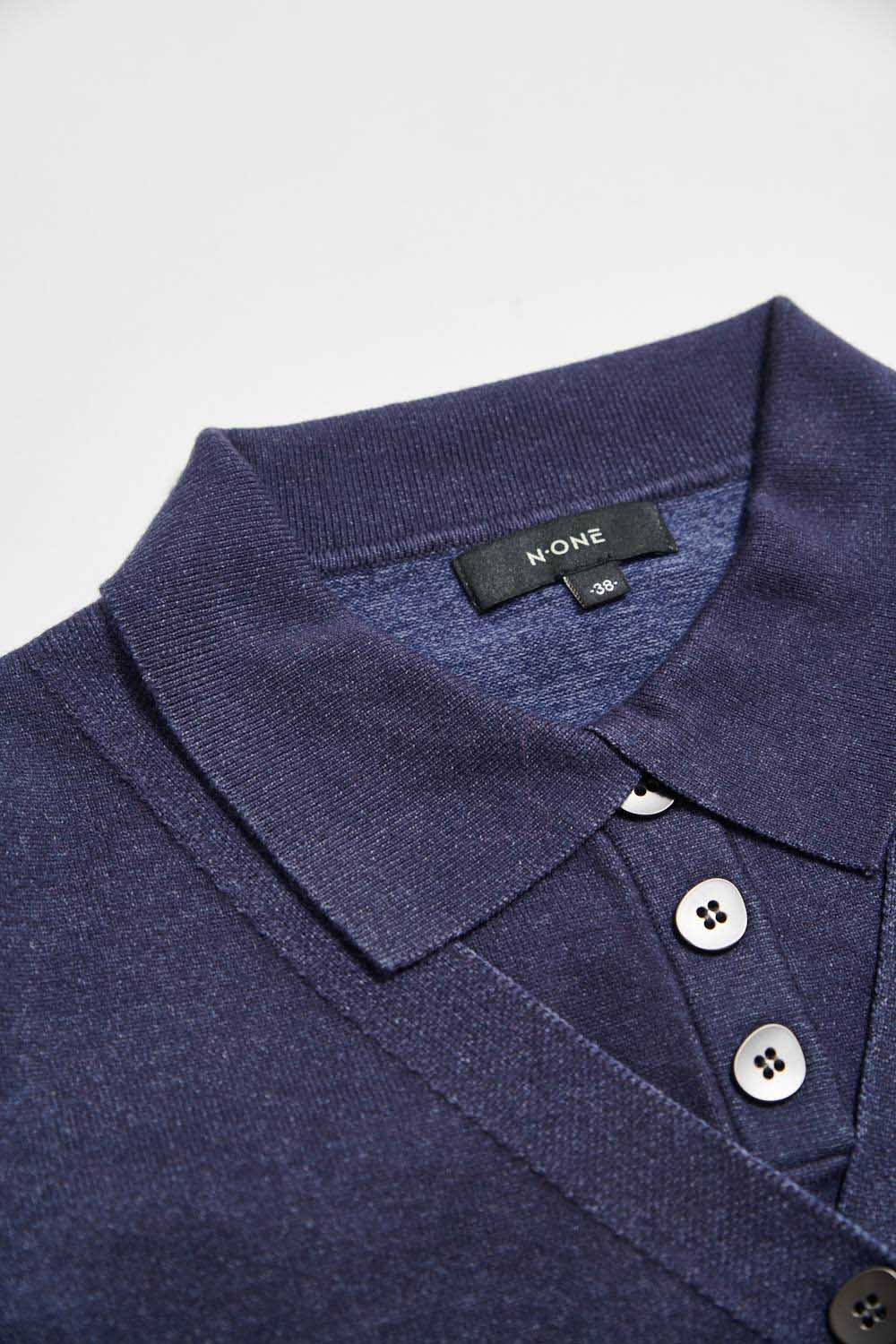 百搭排釦開領假兩件針織上衣 - 深邃藏藍, 36
