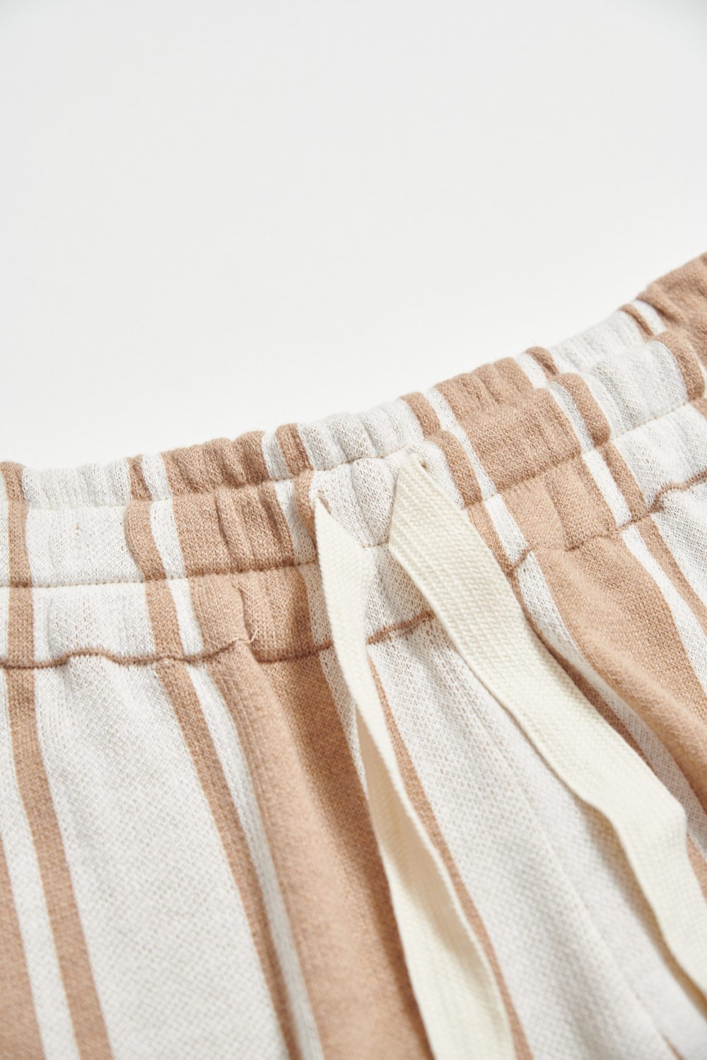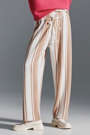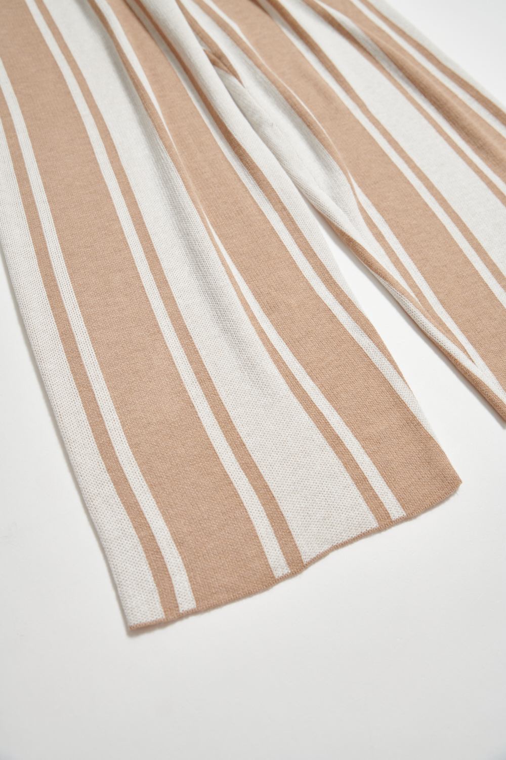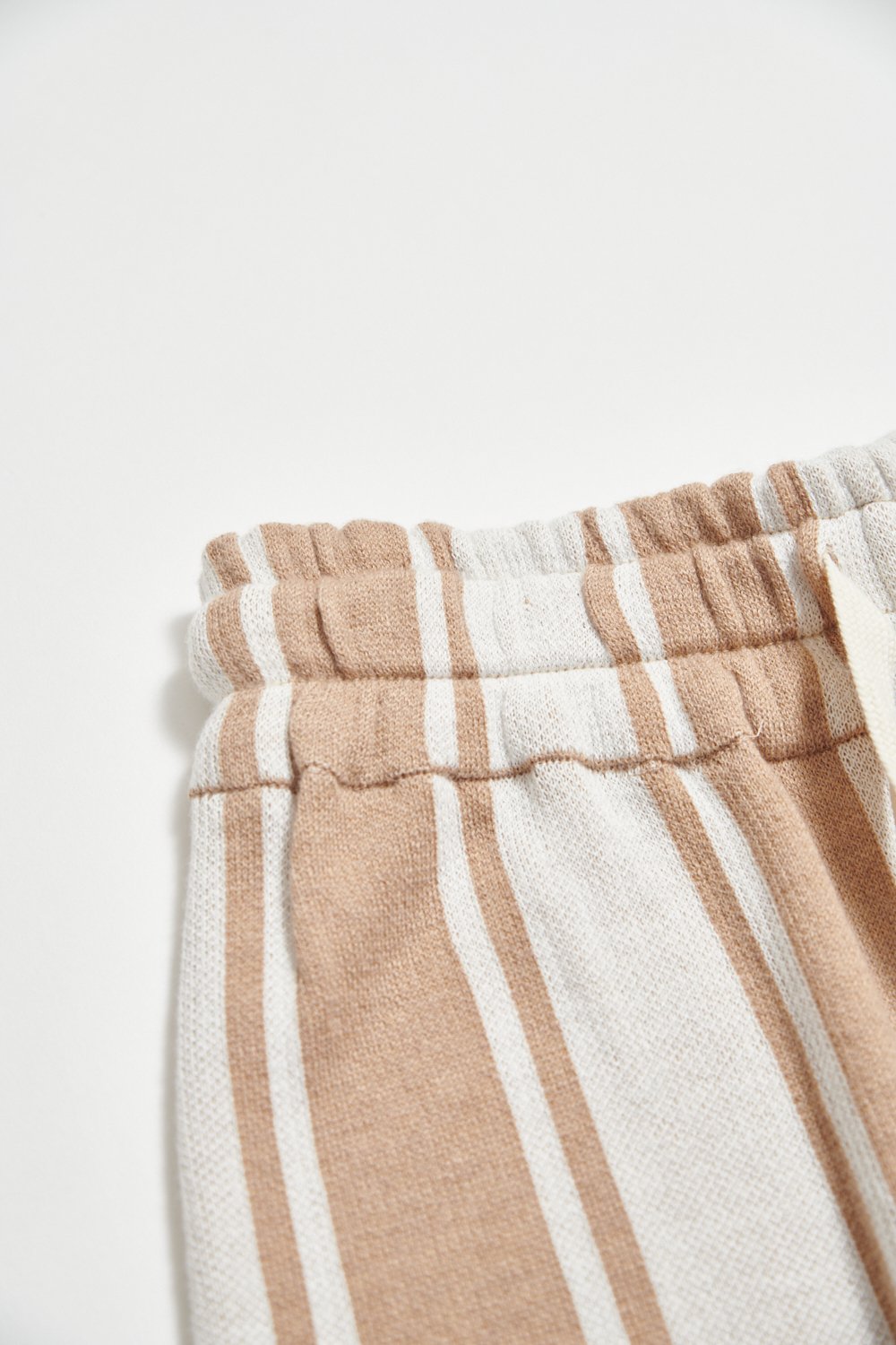 渡假風寬版條紋舒適針織長褲 - 可可卡其, 36