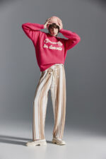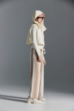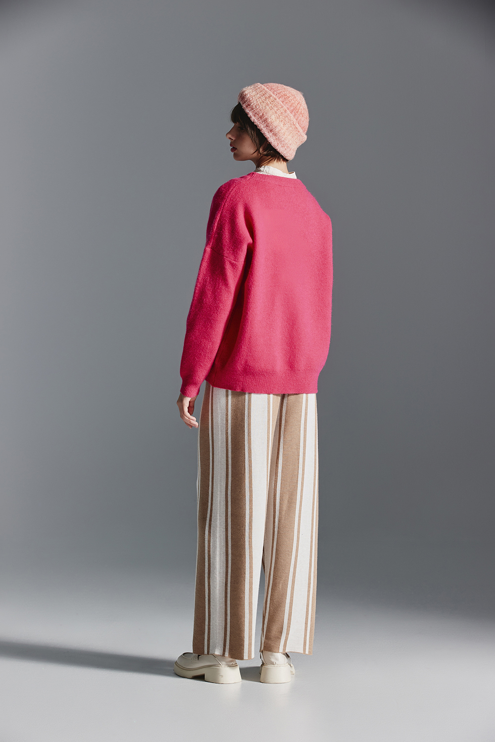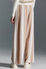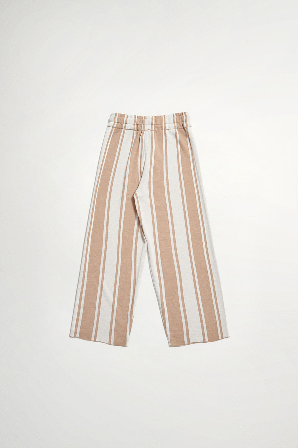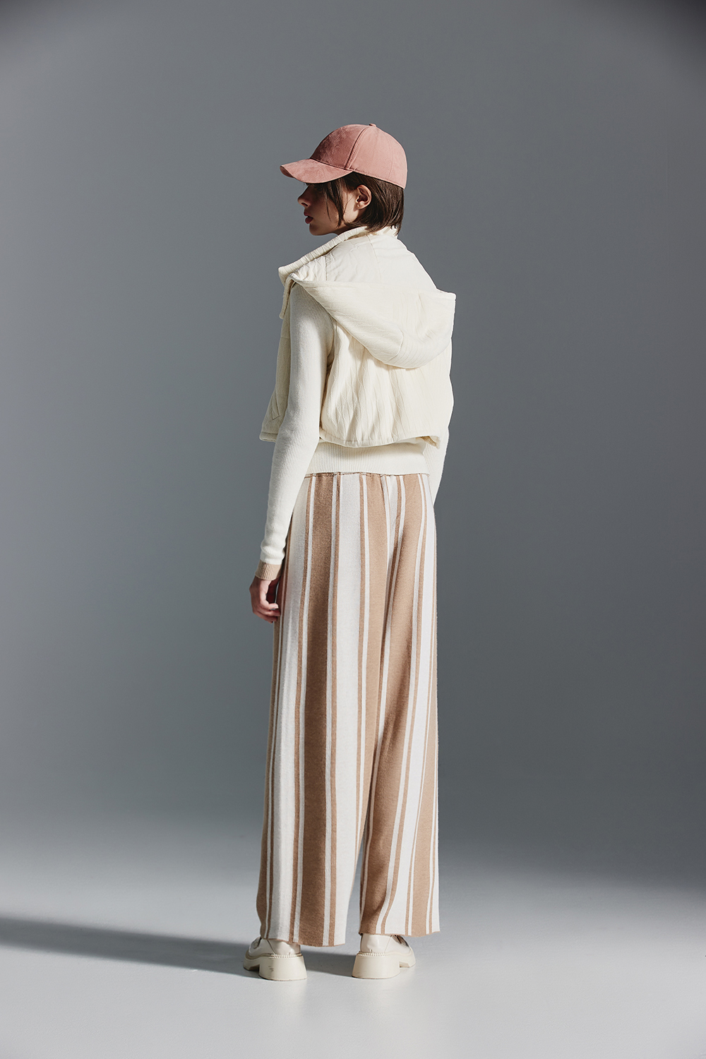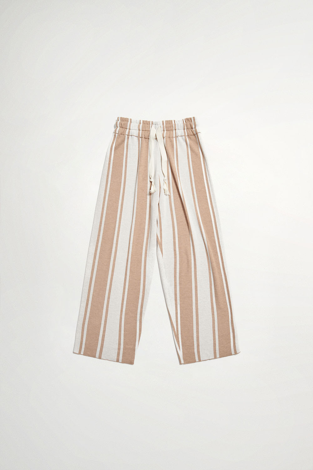 渡假風寬版條紋舒適針織長褲 - 可可卡其, 36