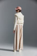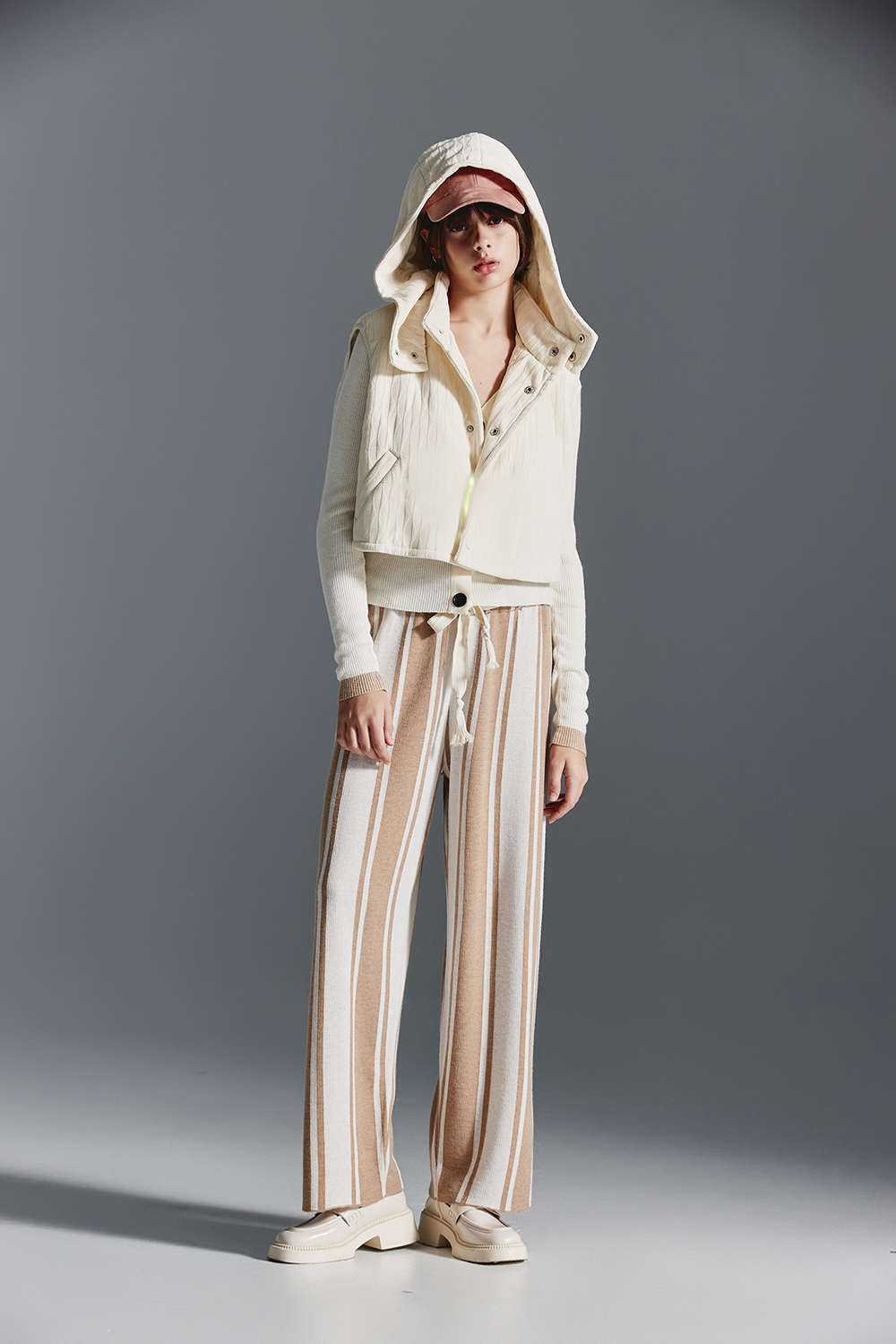 渡假風寬版條紋舒適針織長褲 - 可可卡其, 38