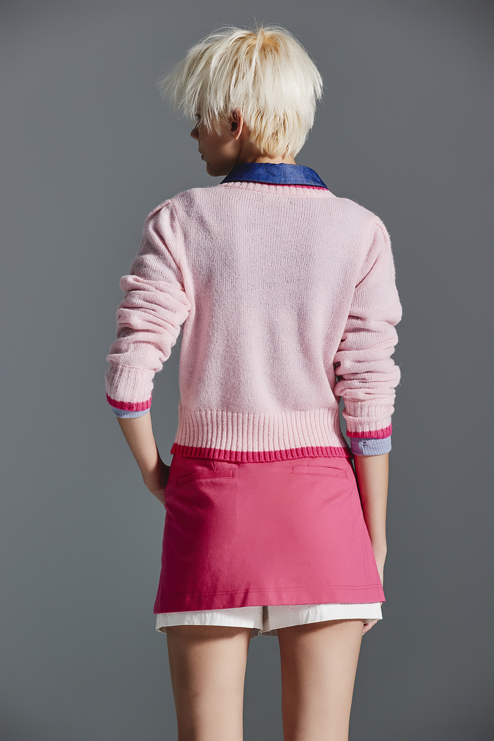 簡約經典版型,搭配粉嫩菱格收腰造型,給一整天帶來好心情。