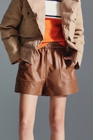 秋光之語雙口袋造型短褲(100%棉羊皮) - 古樸咖啡, 38