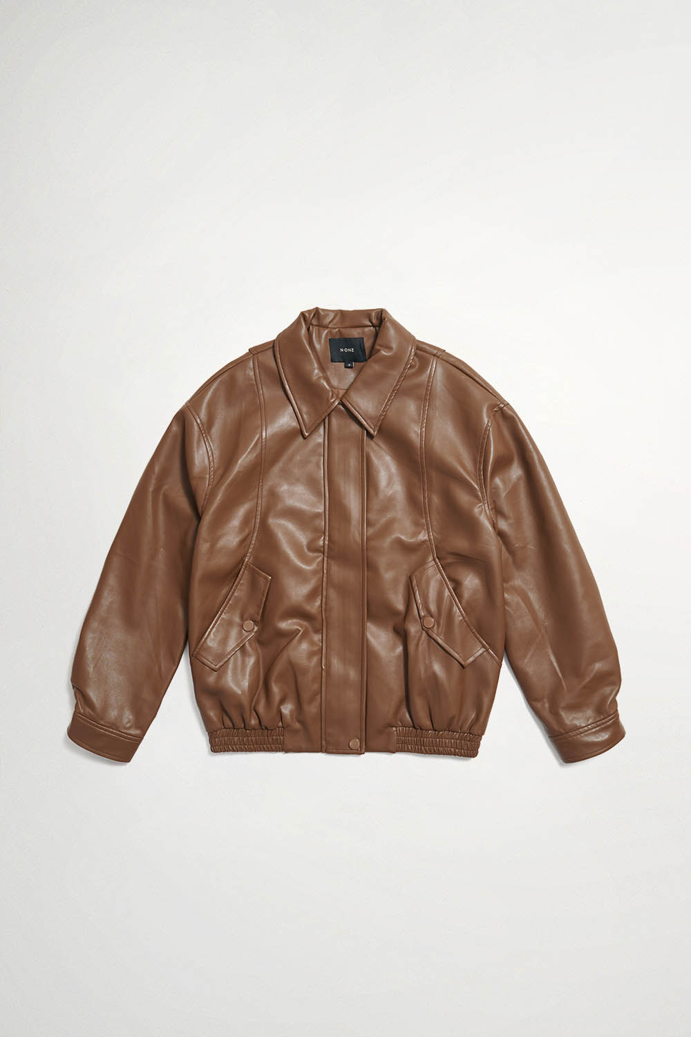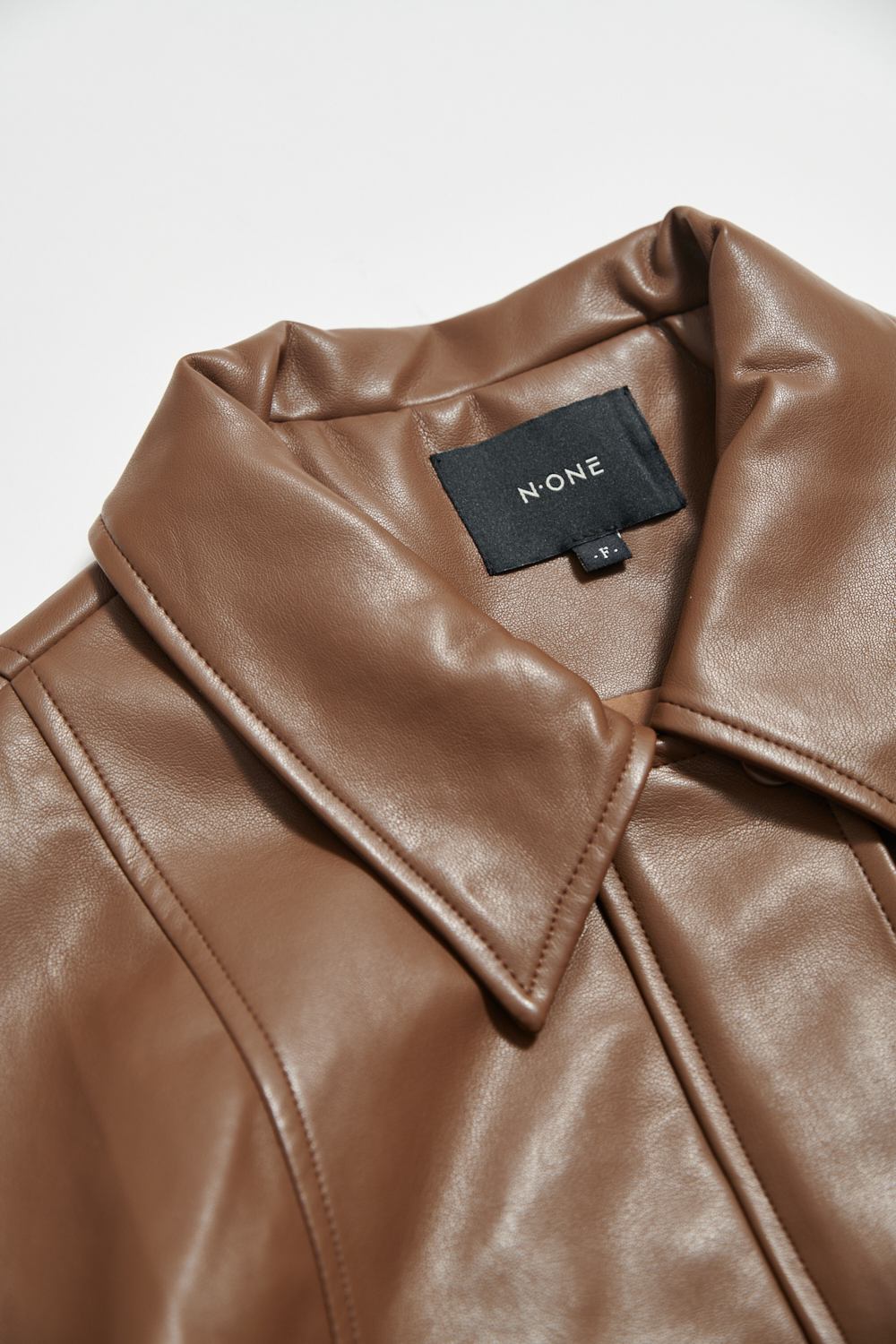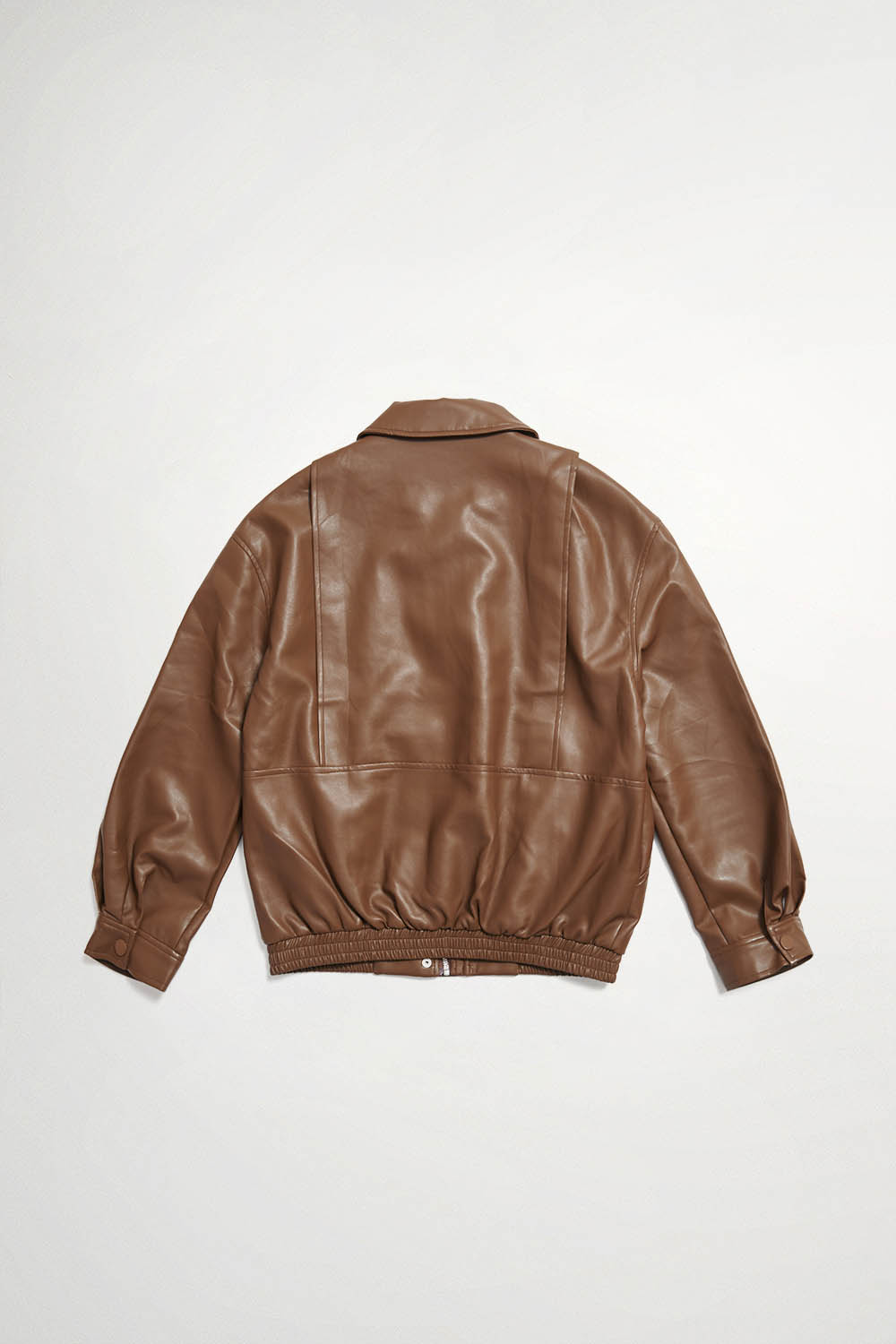 美式復古寬版仿皮外套 - 古樸咖啡, F