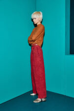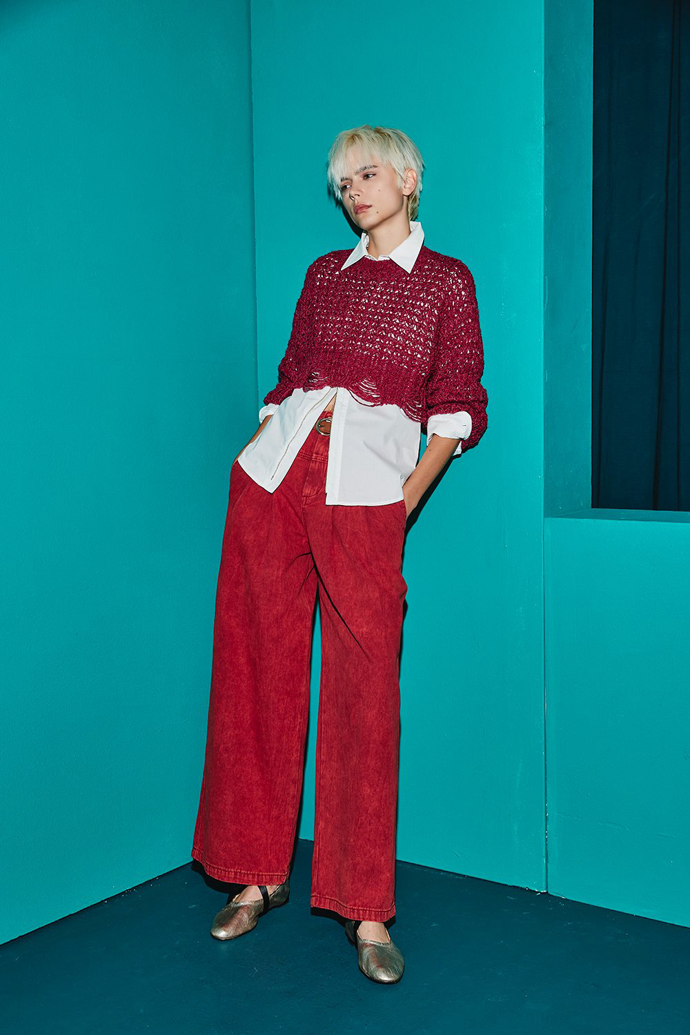 浮翠流丹抓褶牛仔寬褲 - 耀眼赤紅, 36
