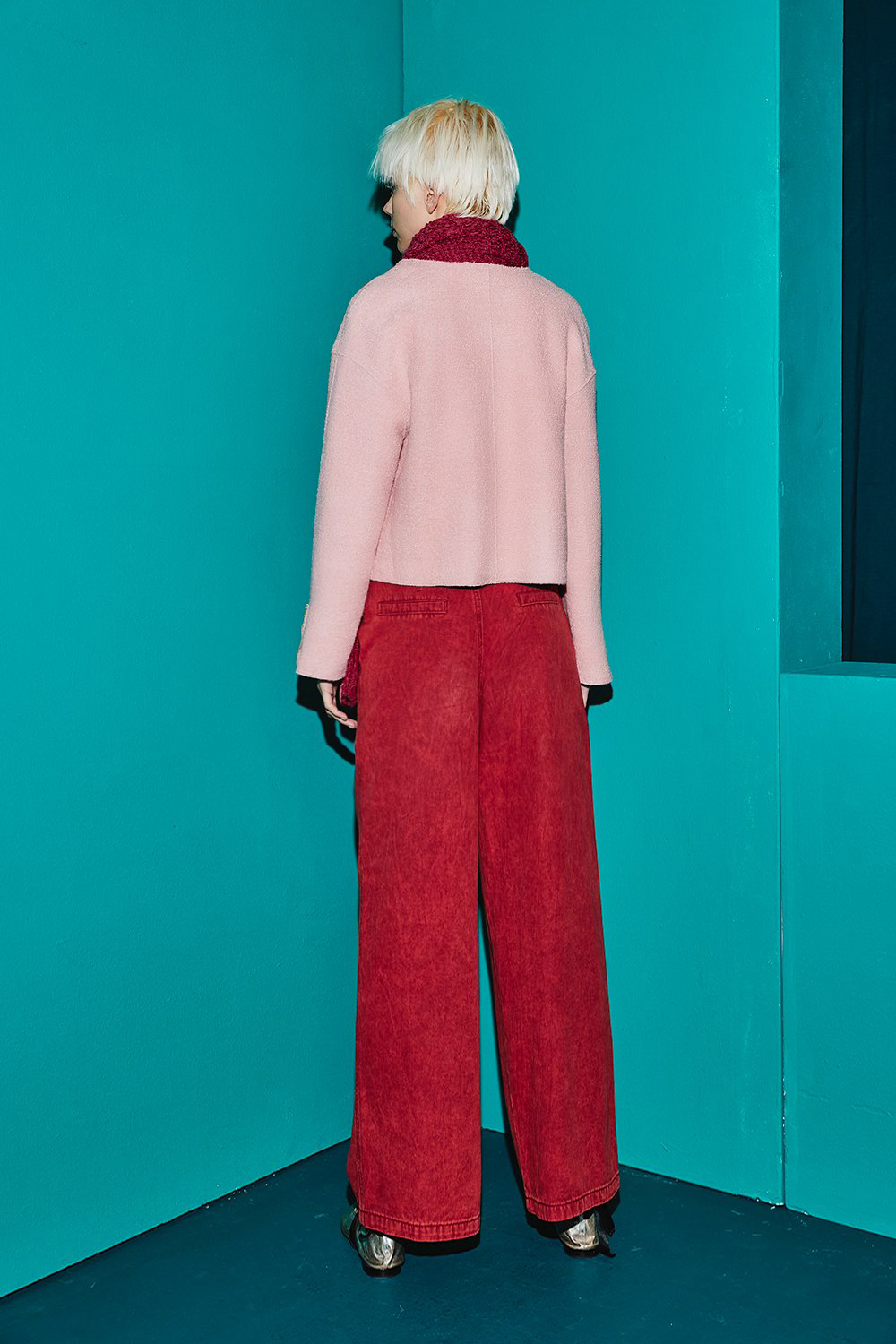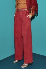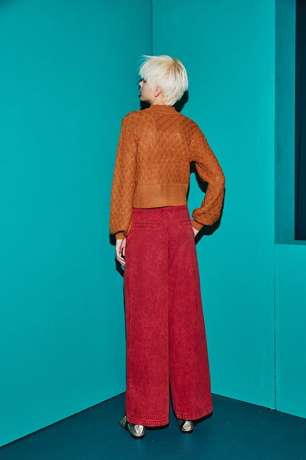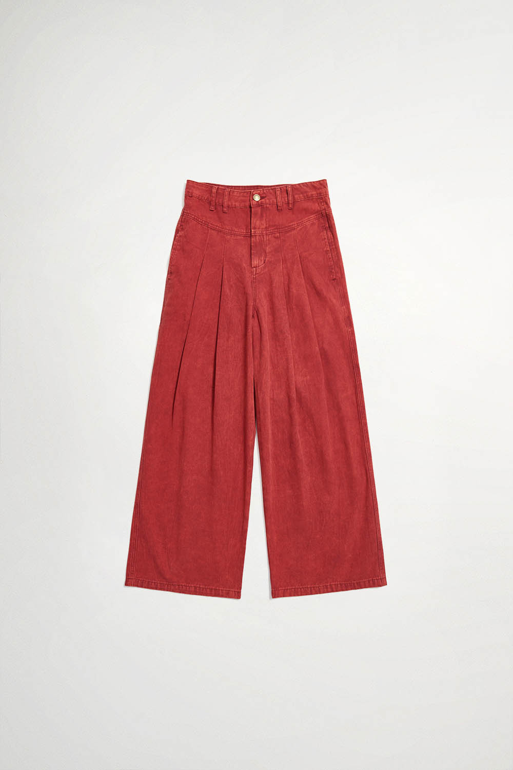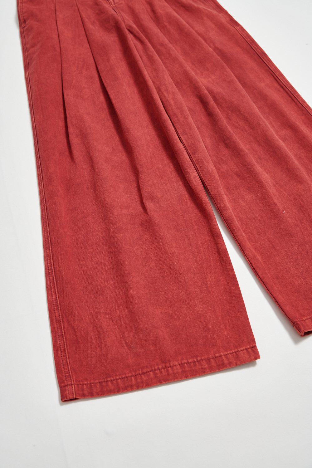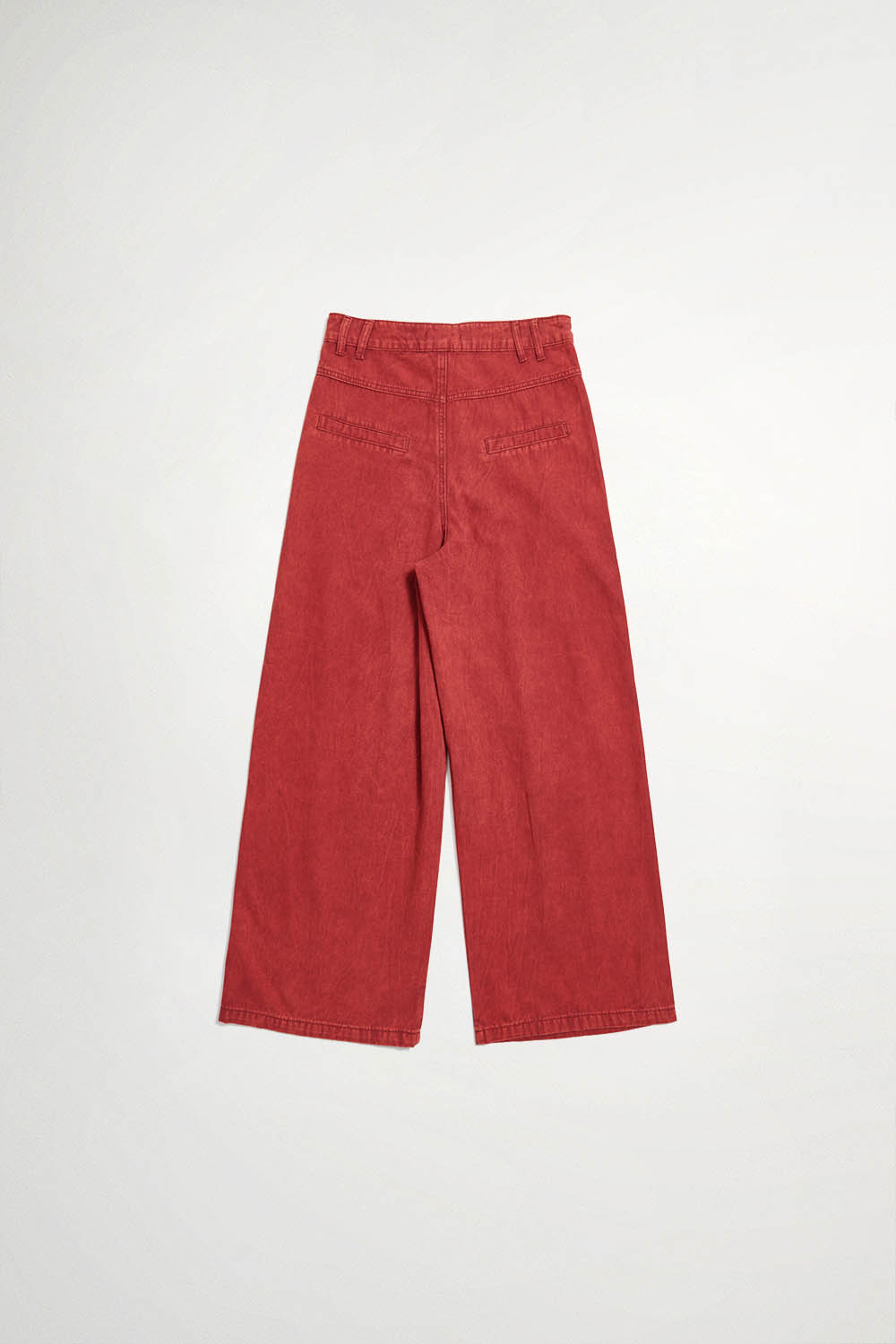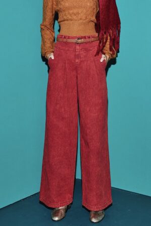 浮翠流丹抓褶牛仔寬褲 - 耀眼赤紅, 38