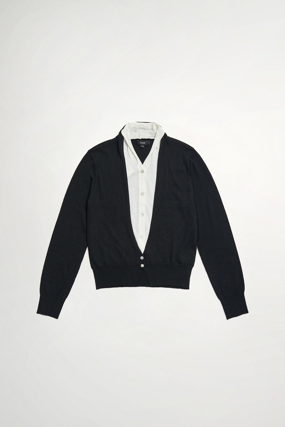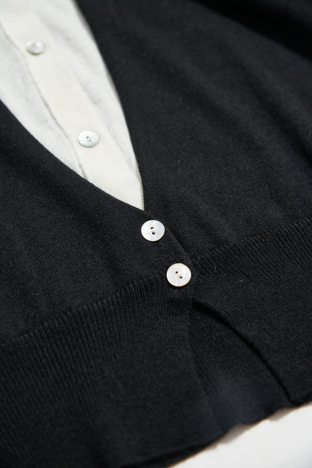 經典配色假兩件針織上衣 - 神祕純黑, 36