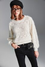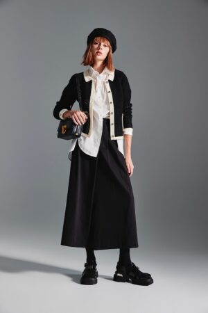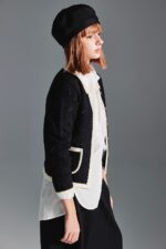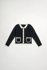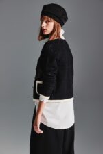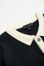 南法假日小香風簍空針織外套 - 神祕純黑, 36