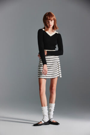 復古學院風翻領坑條針織上衣 - 神祕純黑, 36