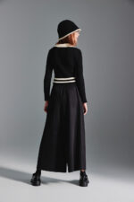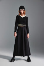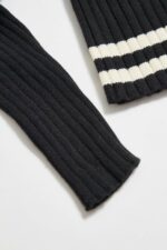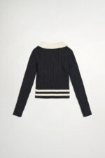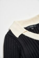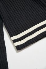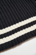 復古學院風翻領坑條針織上衣 - 神祕純黑, 36