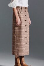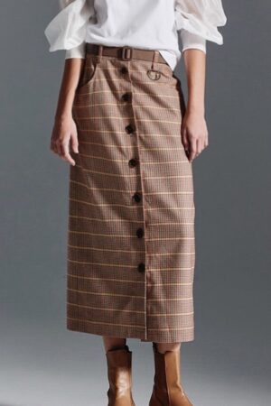 巴黎往事小千鳥格中長裙 - 晚霞橘, 36