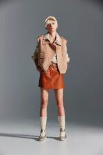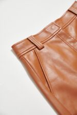 琥珀雲煙仿皮簡約短褲裙 - 琥珀棕色, 38