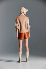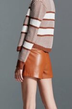 琥珀雲煙仿皮簡約短褲裙 - 琥珀棕色, 36