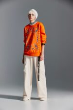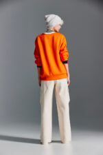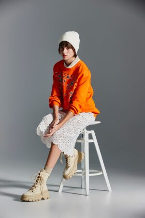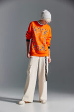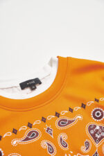 街頭漫步假兩件繡花長棉T - 晚霞橘, 36