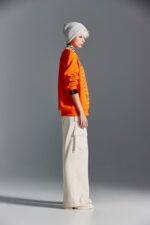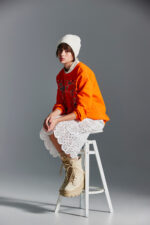街頭漫步假兩件繡花長棉T - 晚霞橘, 38
