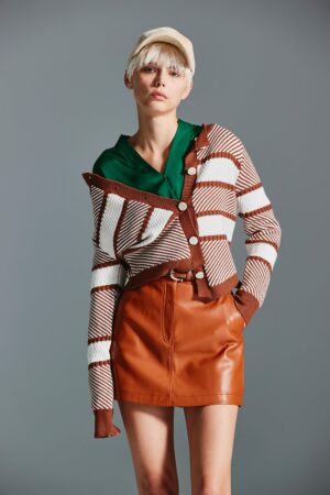 暮秋晚風斜紋針織外套 - 琥珀棕色, 38