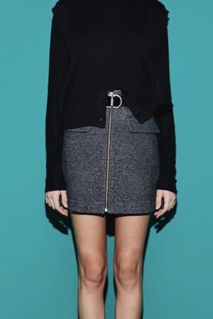 輕歌漫舞花紗拉鍊短裙 - 沉穩霧灰, 36
