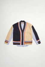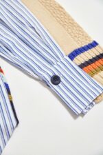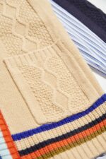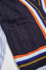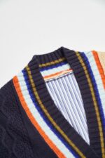 微旖柔行彩色條紋V領厚針織麻花外套 - 清新蔚藍, 36