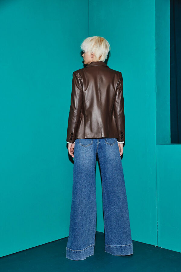 琥珀龍涎跳線收邊皮外套 - 古樸咖啡, 36