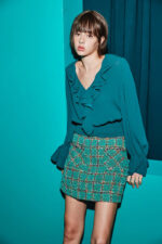 很有厚度的毛料褲裙,綠色很顯白,搭配長靴皮衣超級有型,非常喜歡!