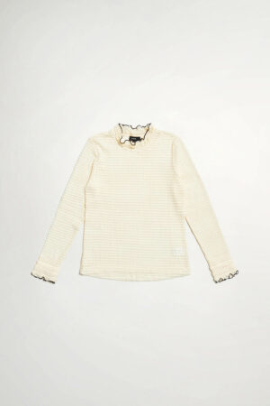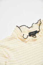 茉莉白雪彈力蕾絲荷葉領上衣 - 奶油杏色, 36