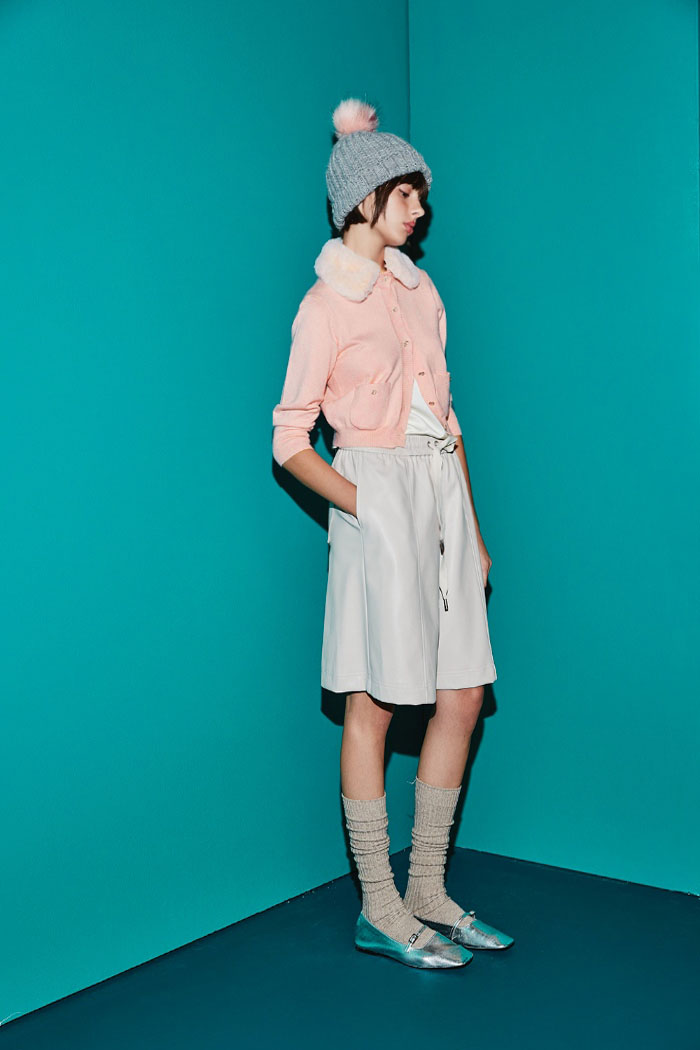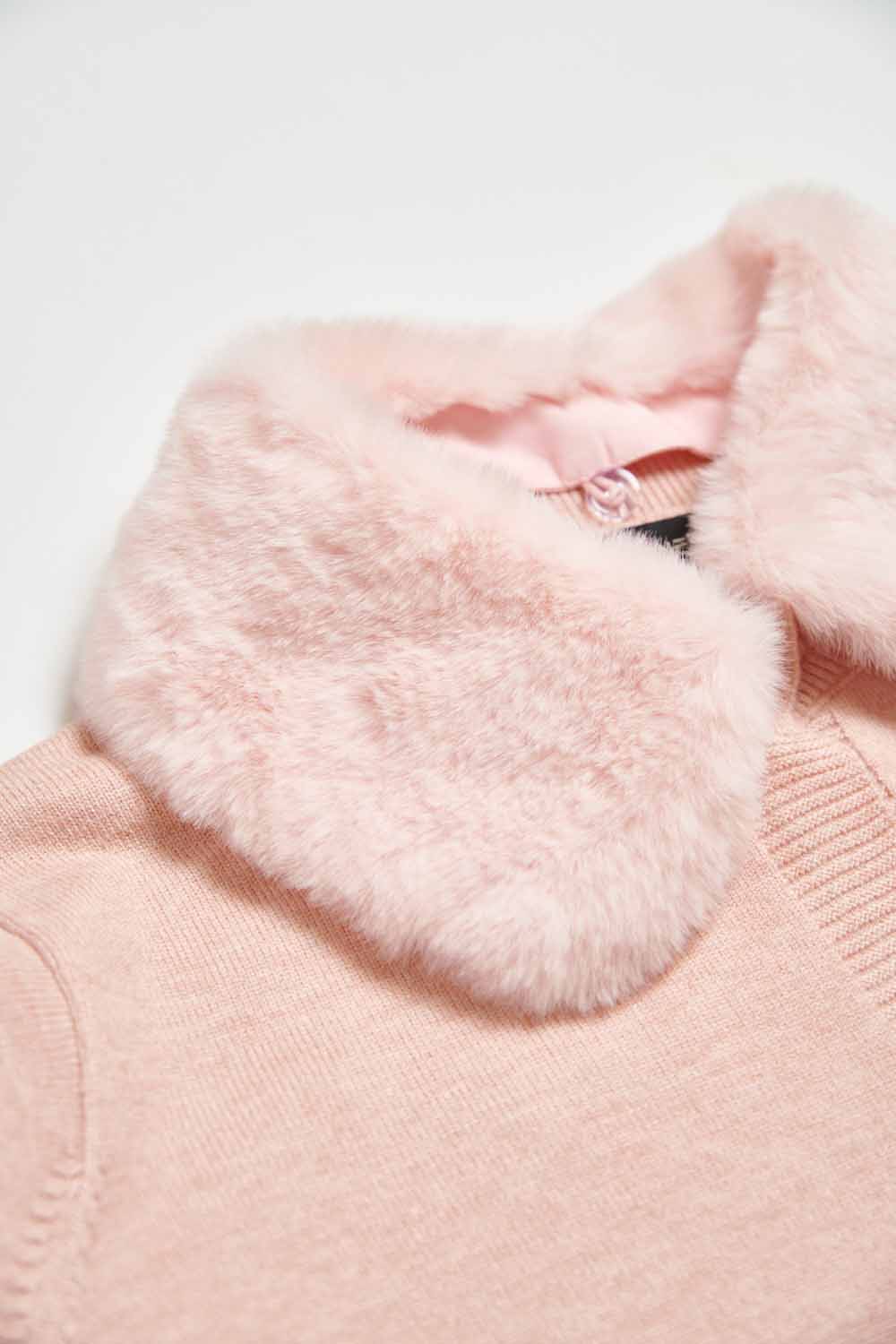 粉色偶遇毛絨針織外套(附毛領) - 微施粉澤, 36