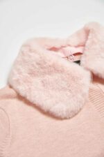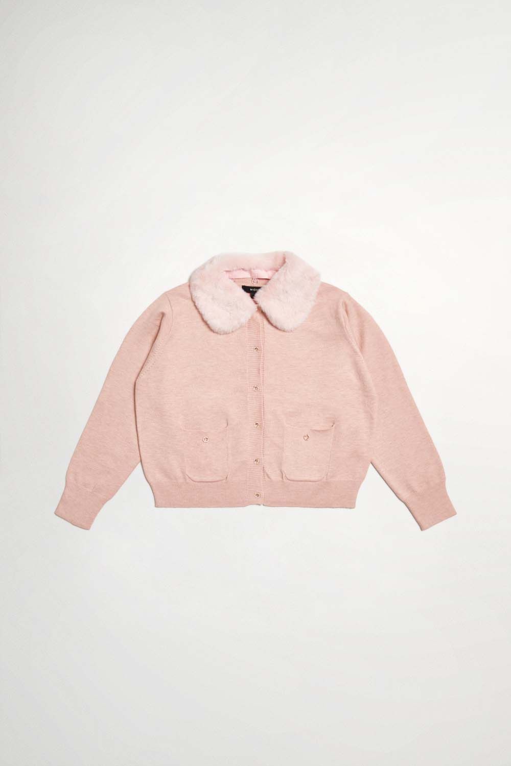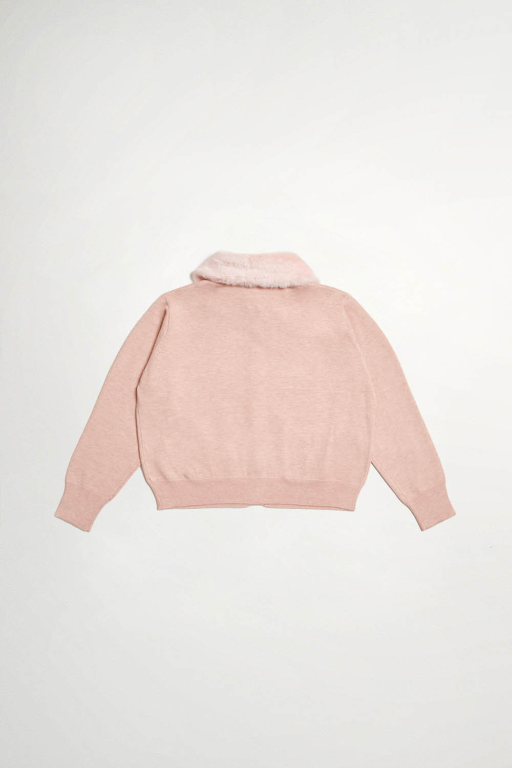 粉色偶遇毛絨針織外套(附毛領) - 微施粉澤, 40