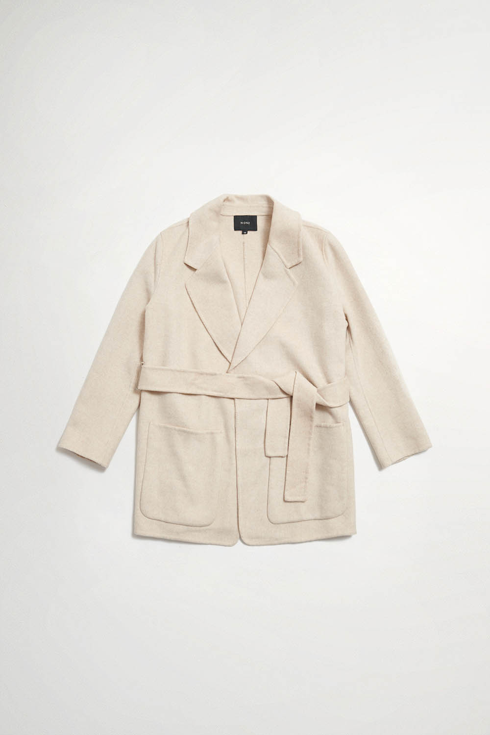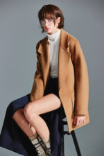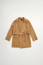 冬日向暖大口袋羊毛外套(附本布綁帶) - 琥珀棕色, 36